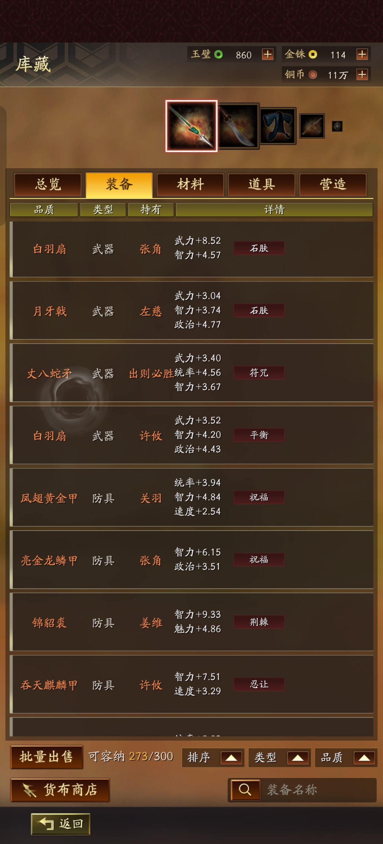 装备多,适配各个剧本