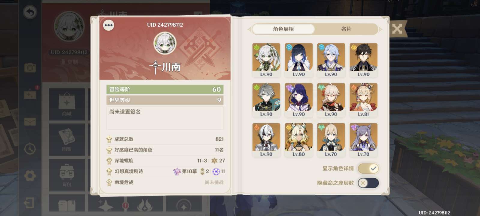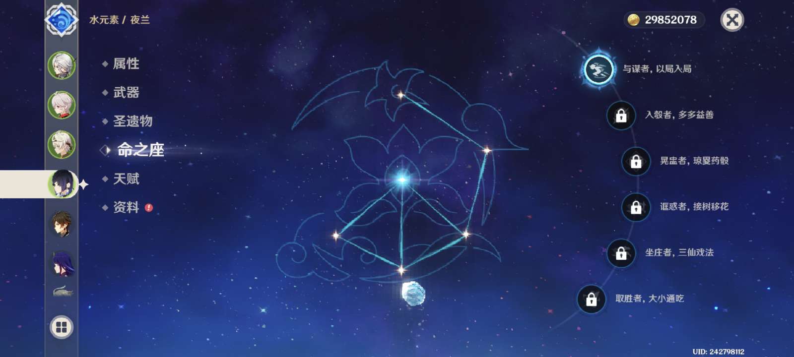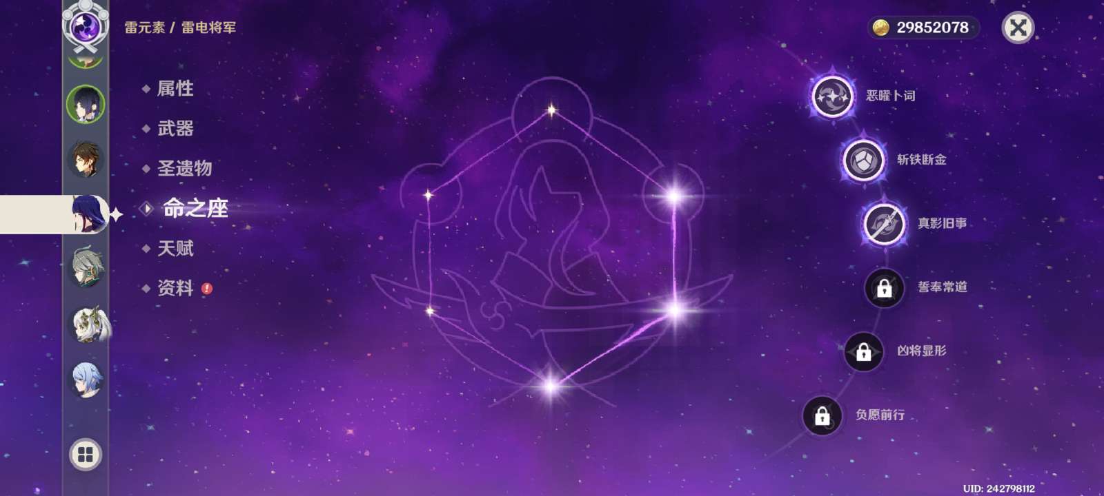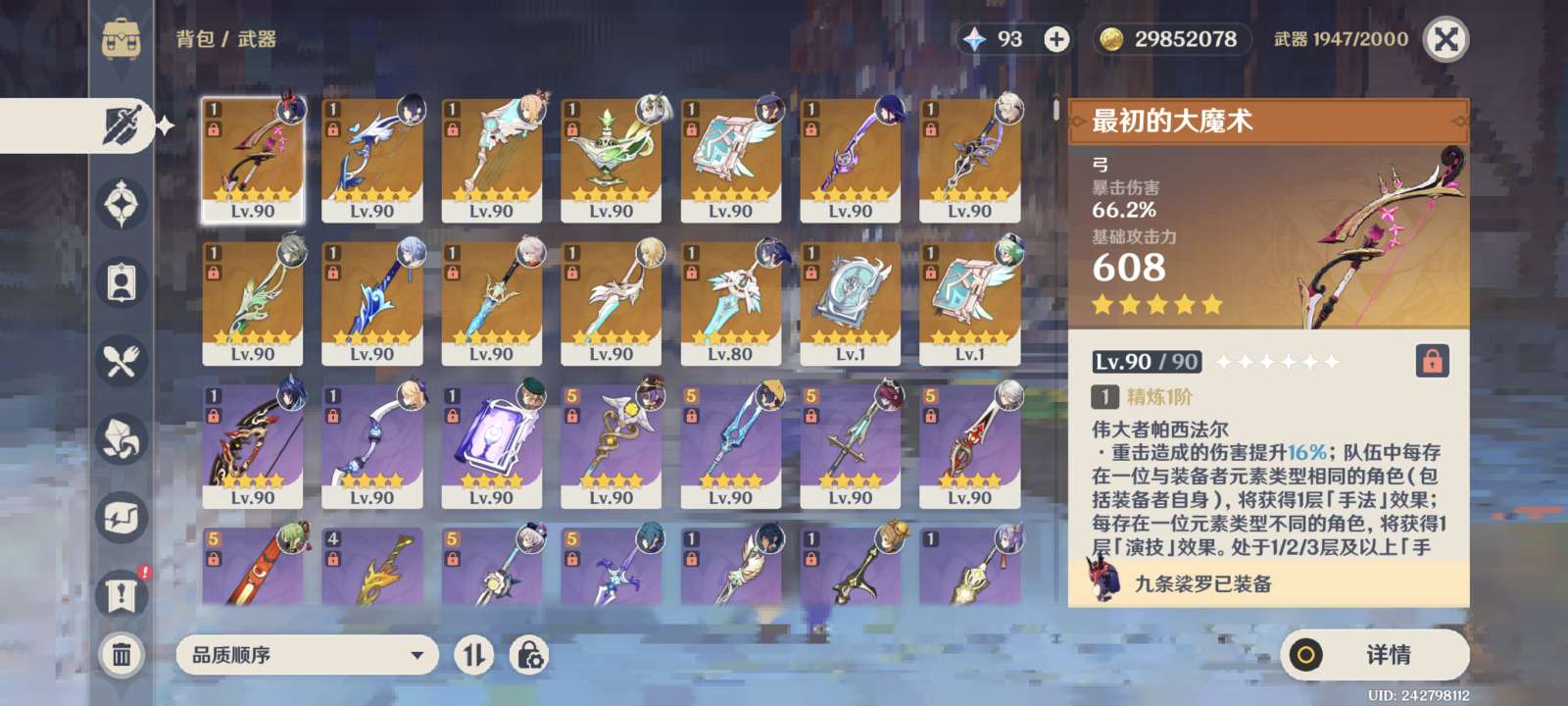 原神成品号,角色已毕业且带专武