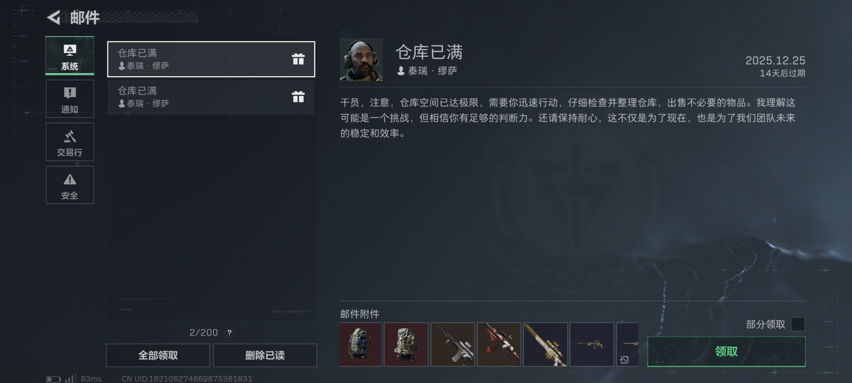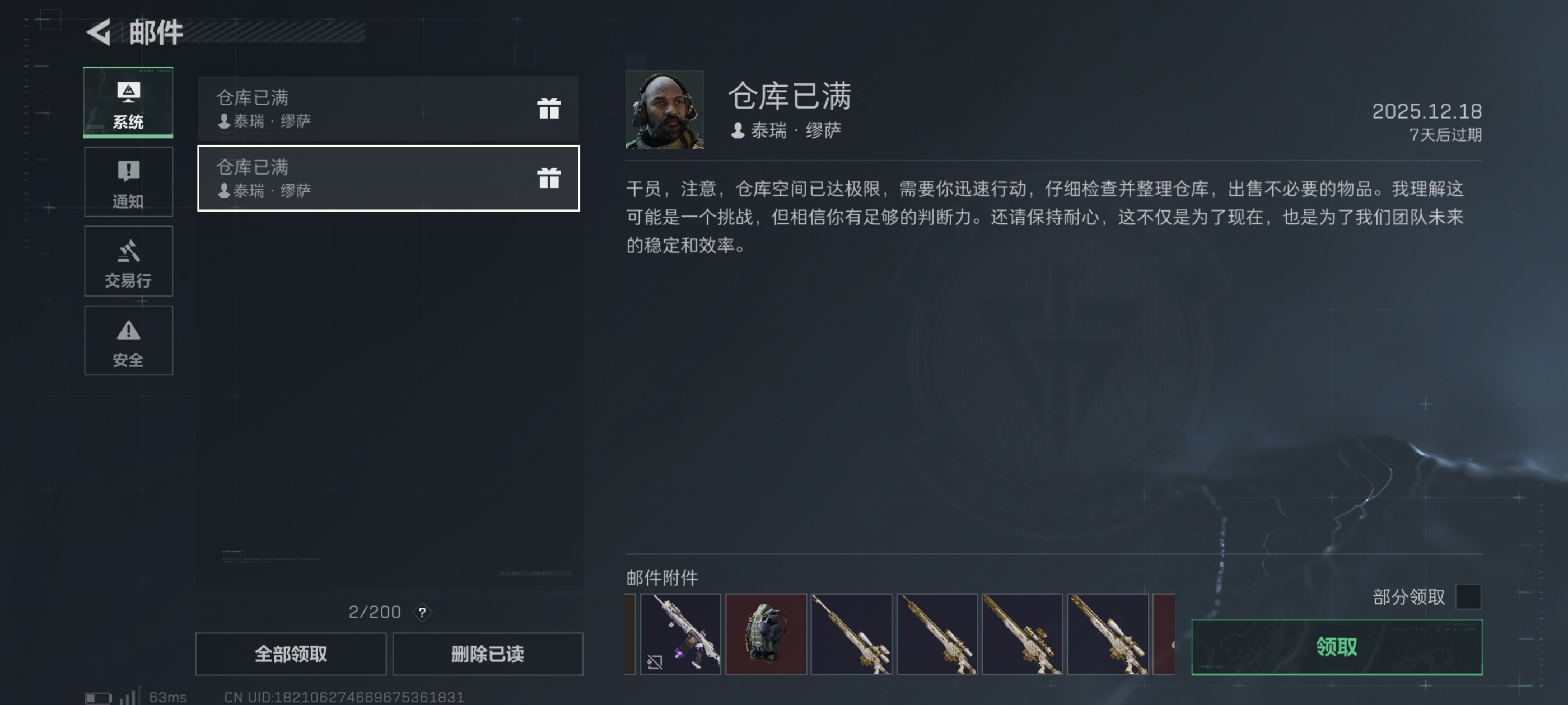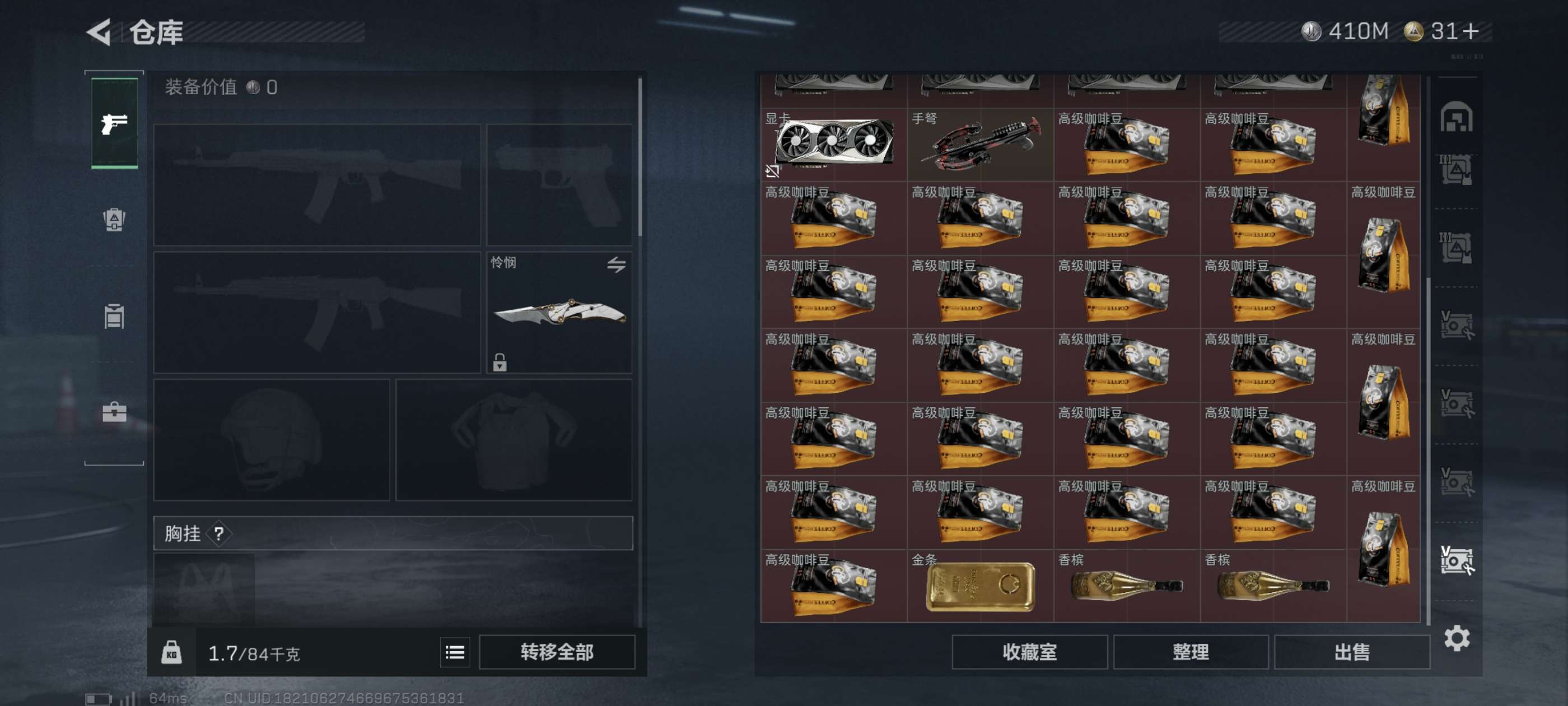 烽火段位黑鹰1 战场段位校官5 总资产791.5M 哈夫币41018W 干员8 挂饰30 近战2 枪械102 载具46
