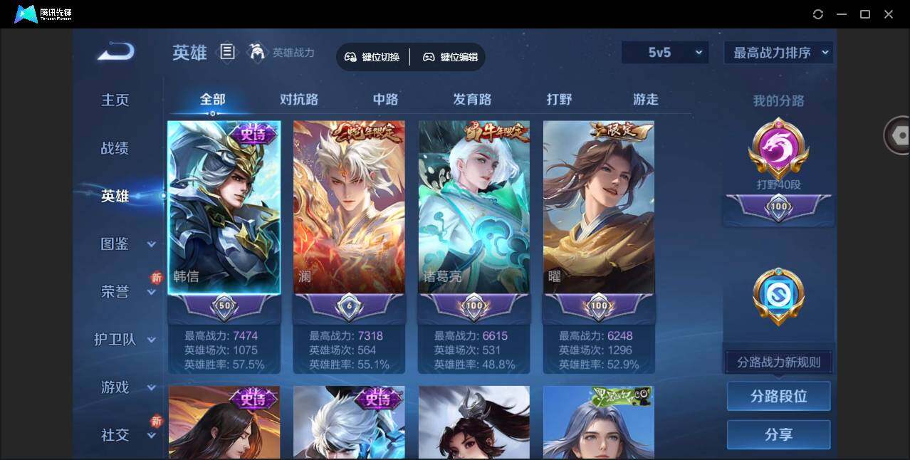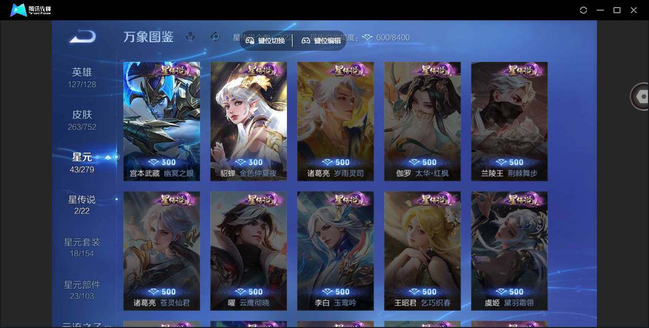 营地账号:/1964270 水晶326抽 安卓Q-V7-最强王者段位-127英雄-263皮肤-1典藏皮肤-10传说-68史诗