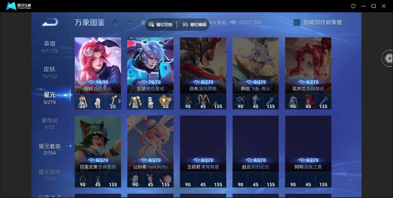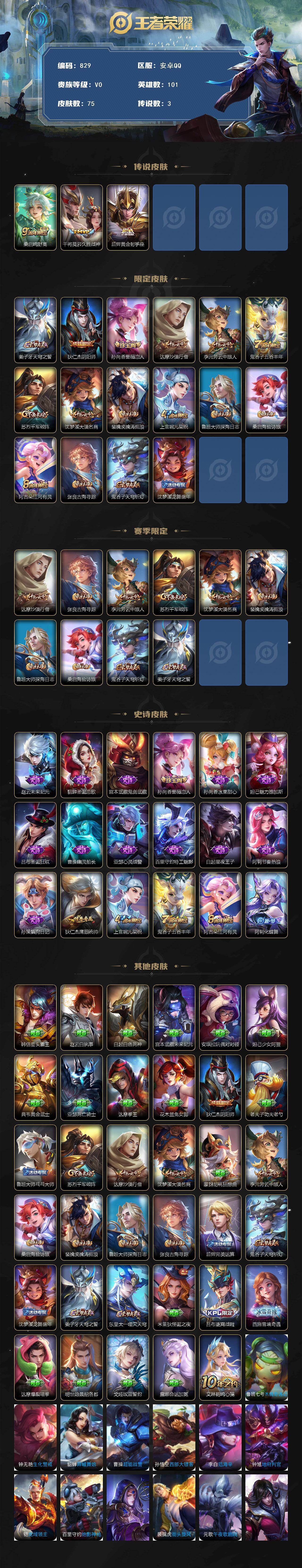 营地账号:/1964295 王者荣耀账号 安卓Q-V3-荣耀黄金I段位-101英雄-75皮肤-3传说-18史诗
