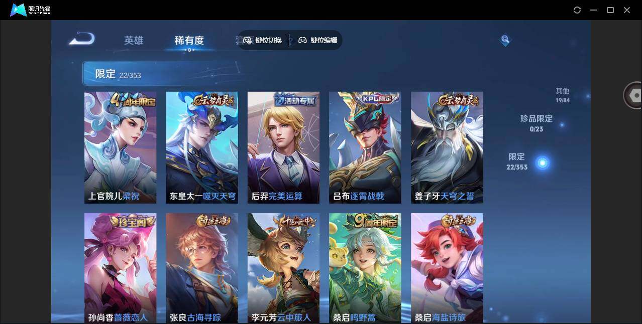 【限定皮肤】:姜子牙天穹之誓,狄仁杰阴阳师,孙尚香蔷薇恋人,达摩沙漠行僧,李元芳云中旅人,鬼谷子五谷丰年,苏烈千军破阵,沈梦溪大漠名商,裴擒虎擒涛扼浪,上官婉儿梁祝,鲁班大师探海日志,桑启海盐诗旅,阿古朵江