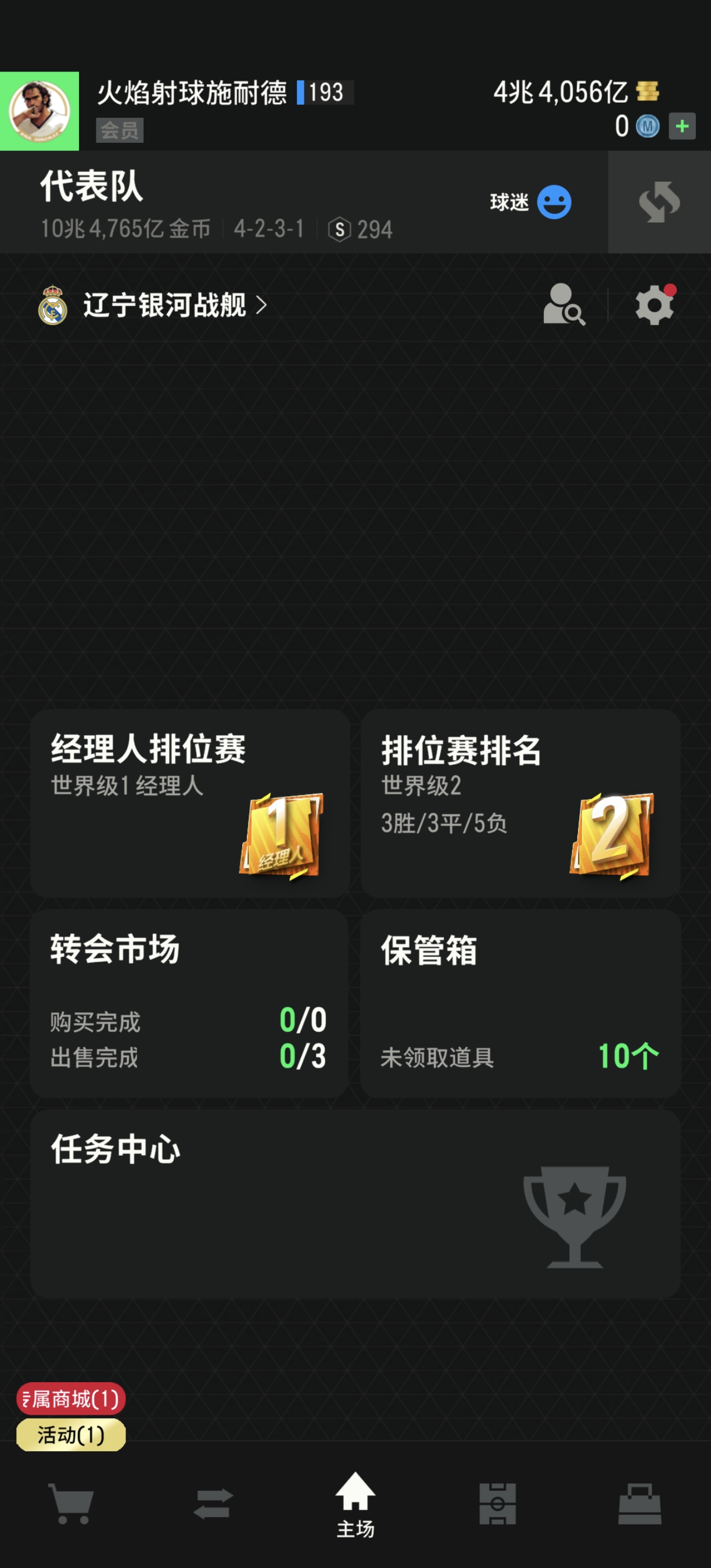 强力红绿传奇套,多位9卡10卡球员,内有金币4.4兆。