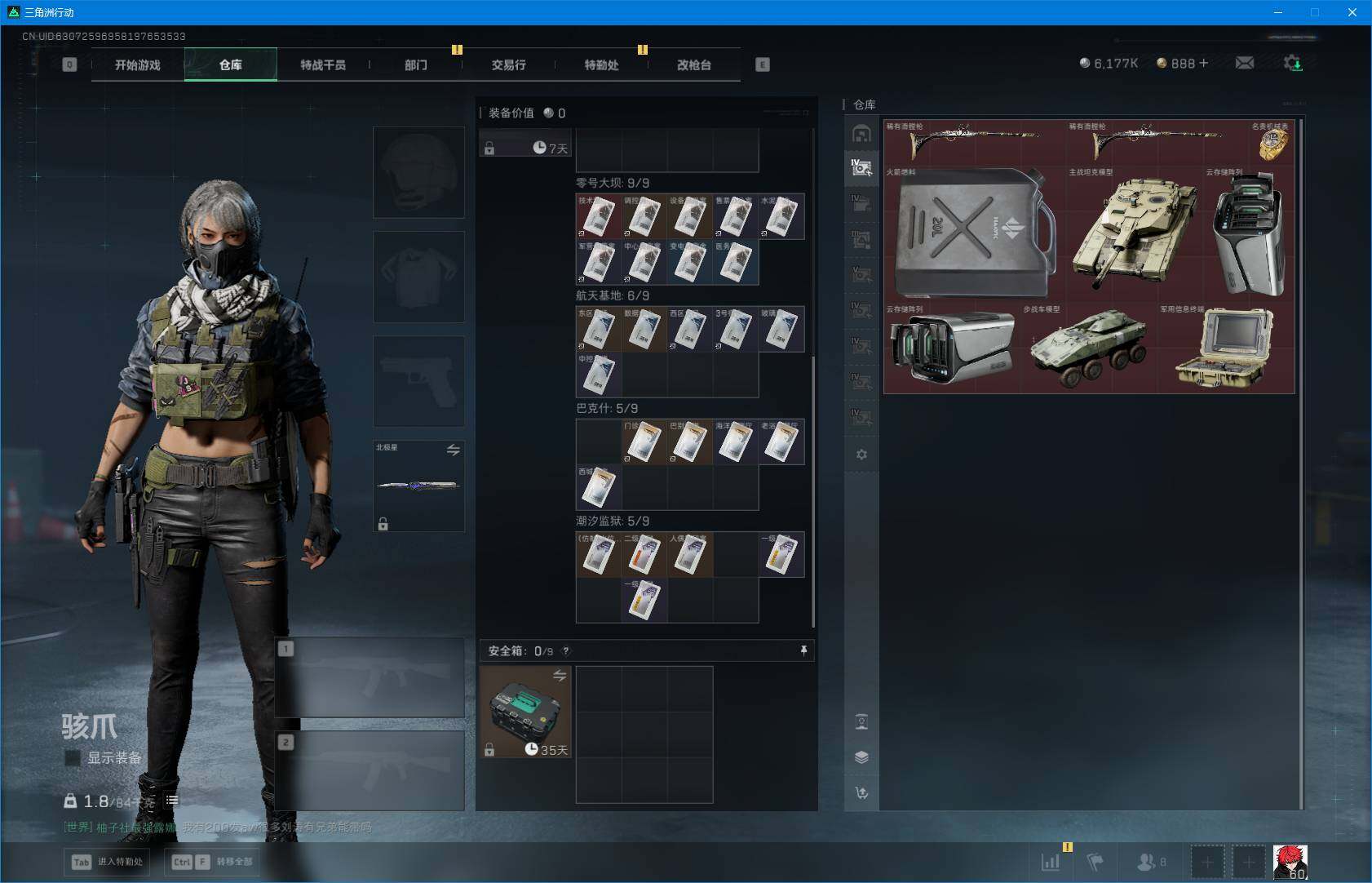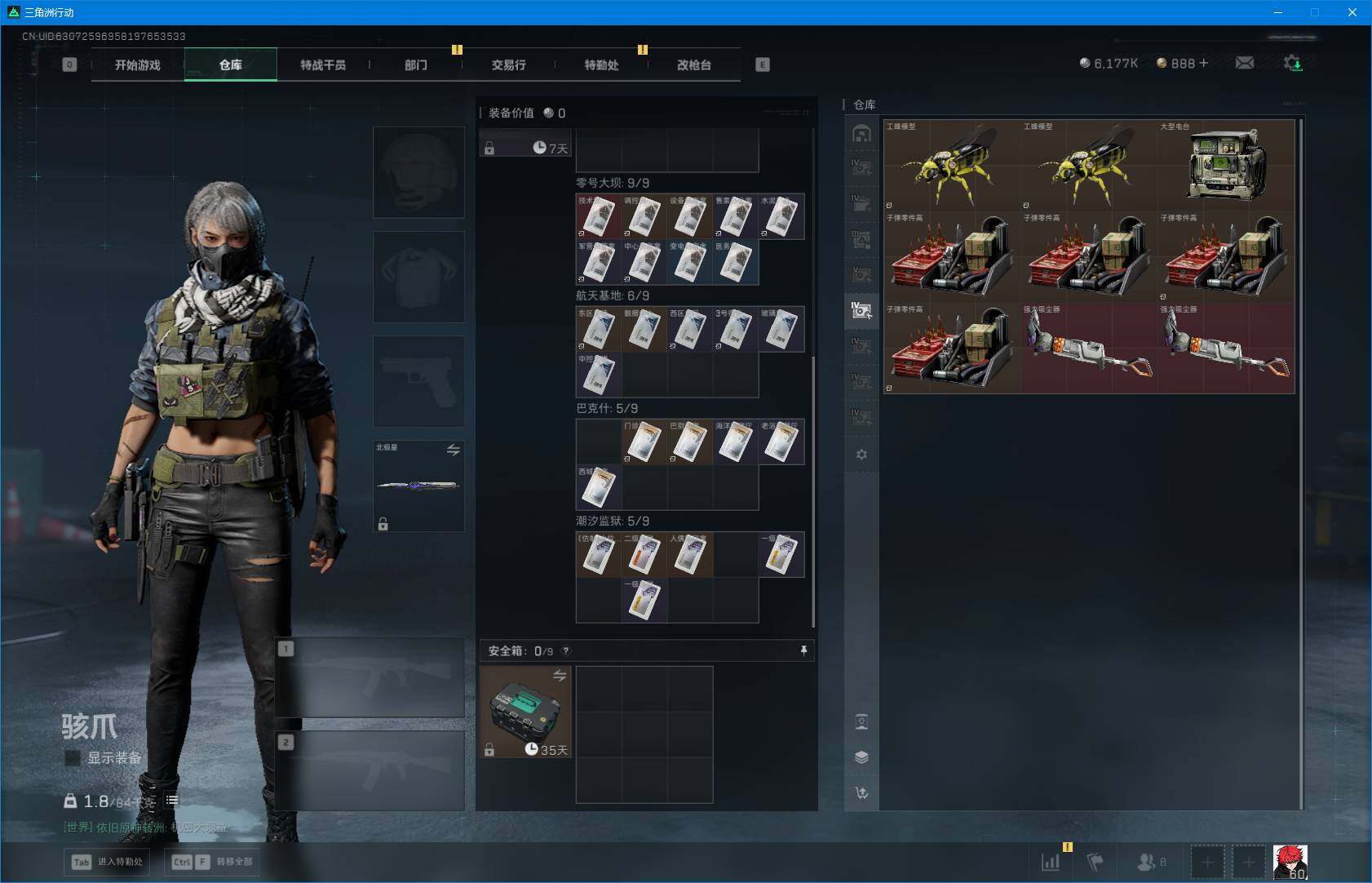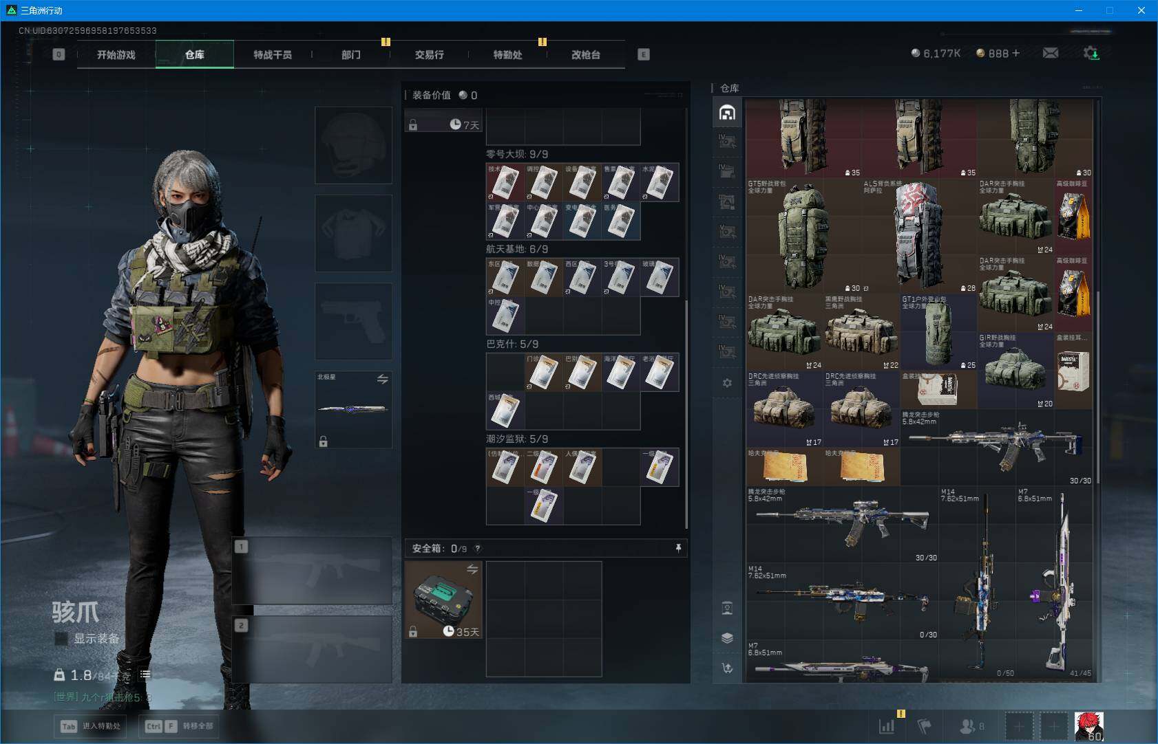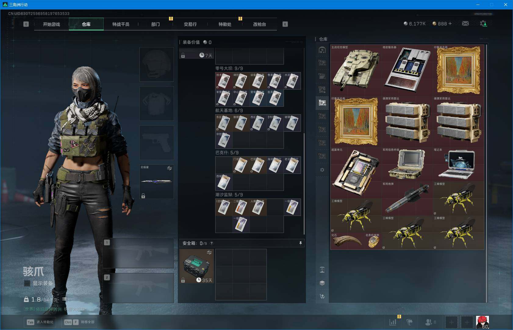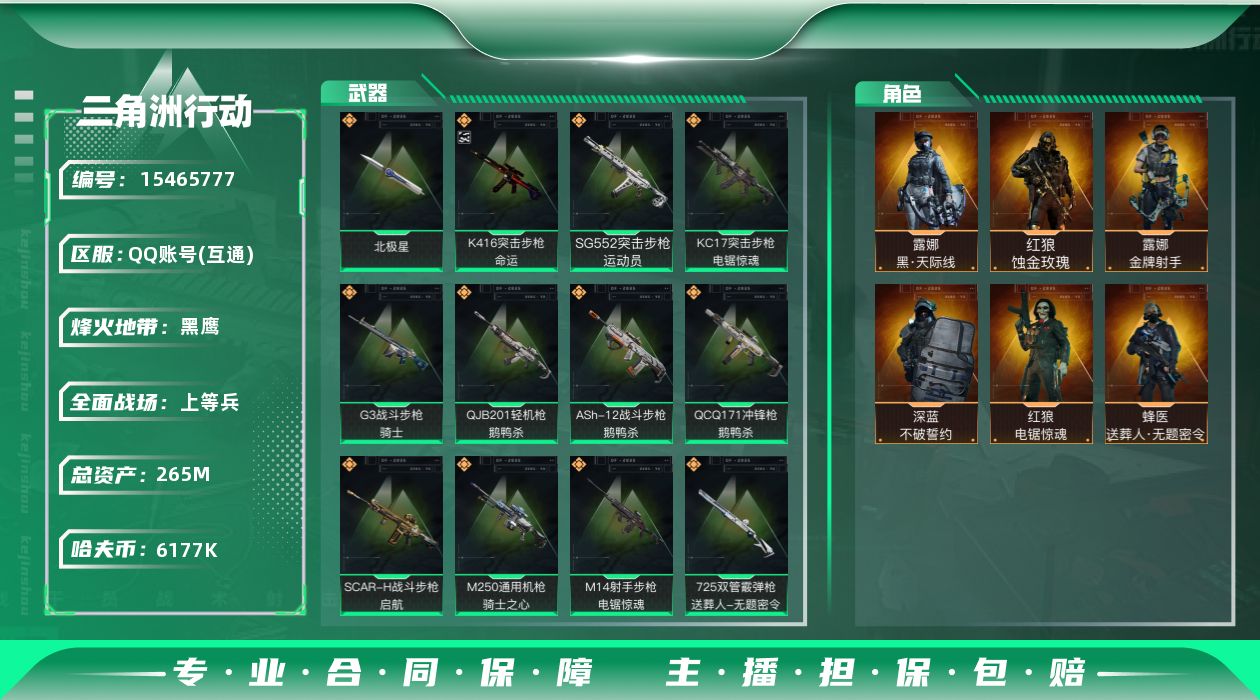 总资产(M):265M/哈夫币(K):6177K/哈夫币(K):6177K/全面战场等级:24_段位