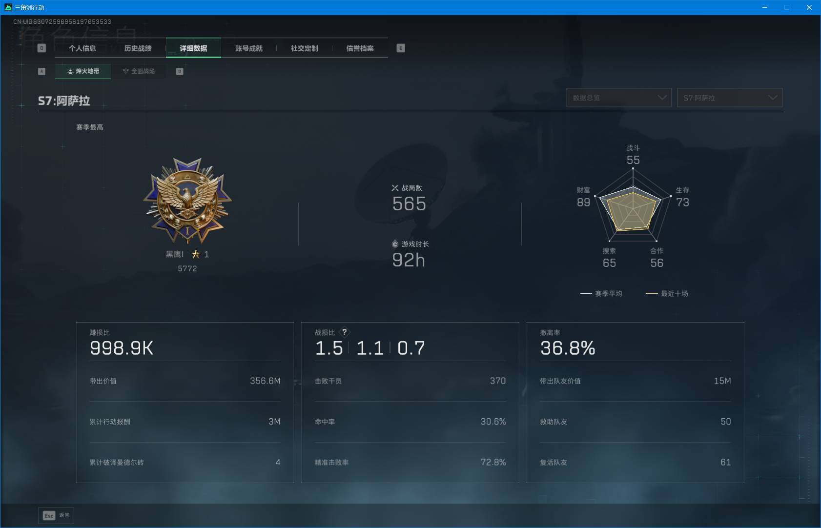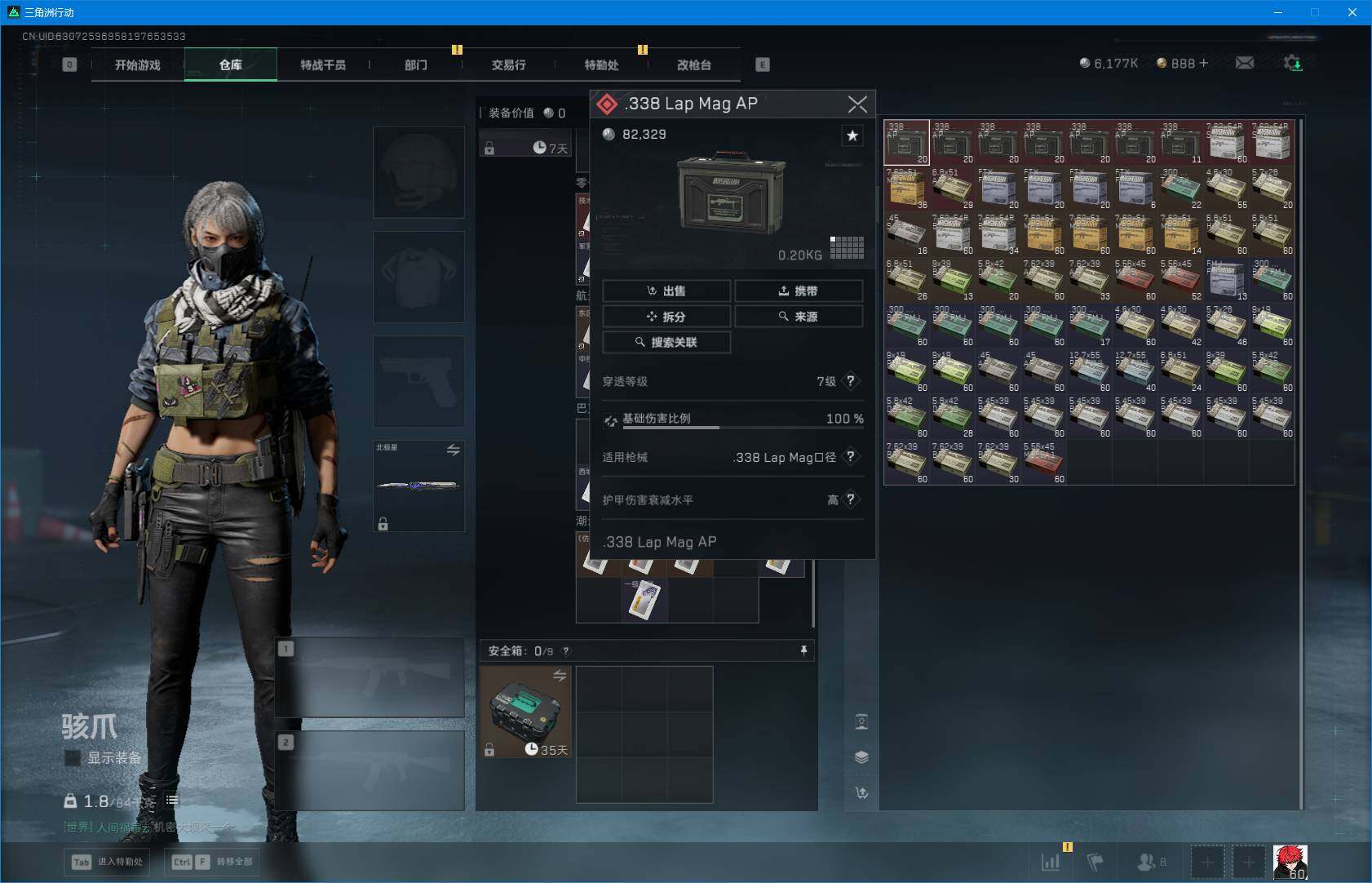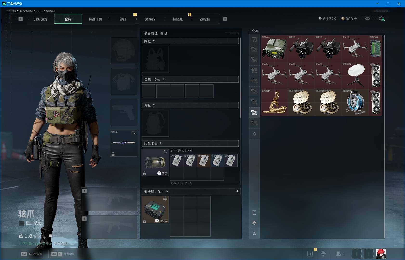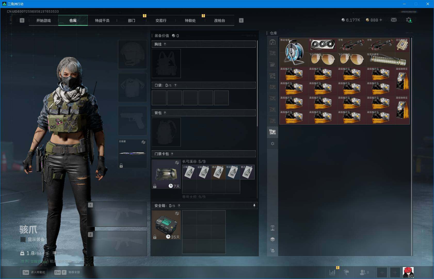 总资产(M):265M/哈夫币(K):6177K/哈夫币(K):6177K/全面战场等级:24_段位