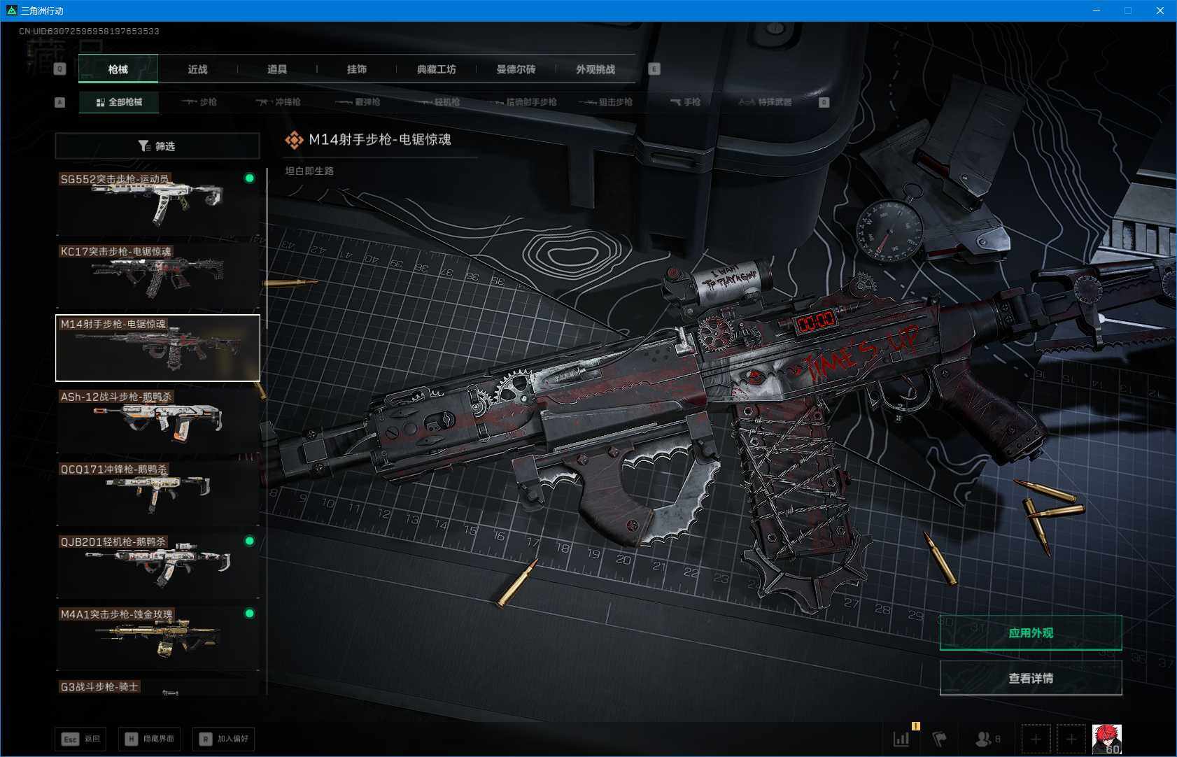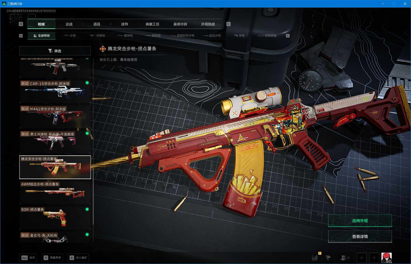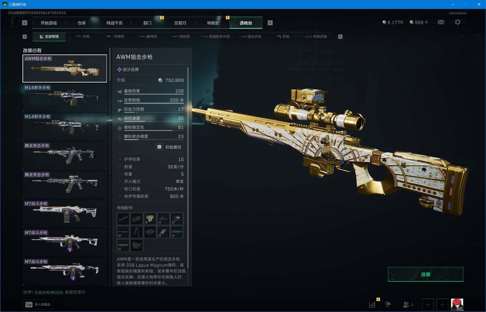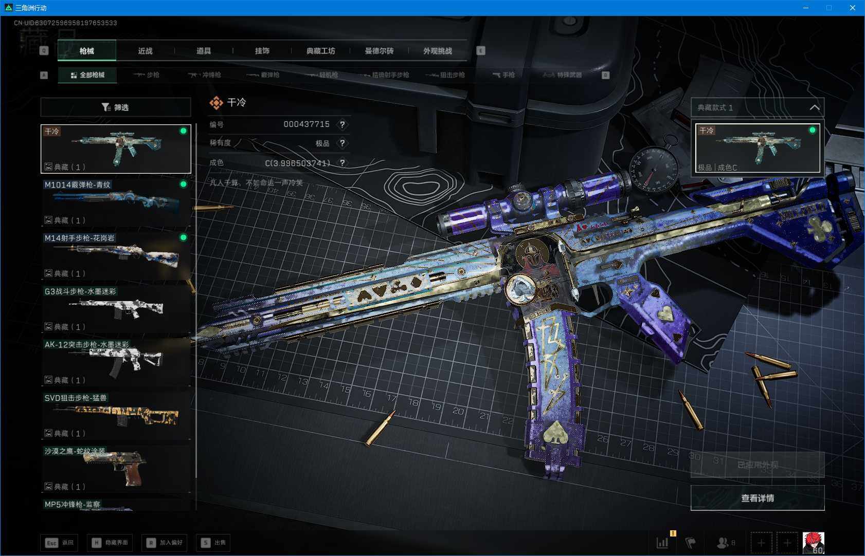 总资产(M):265M/哈夫币(K):6177K/哈夫币(K):6177K/全面战场等级:24_段位
