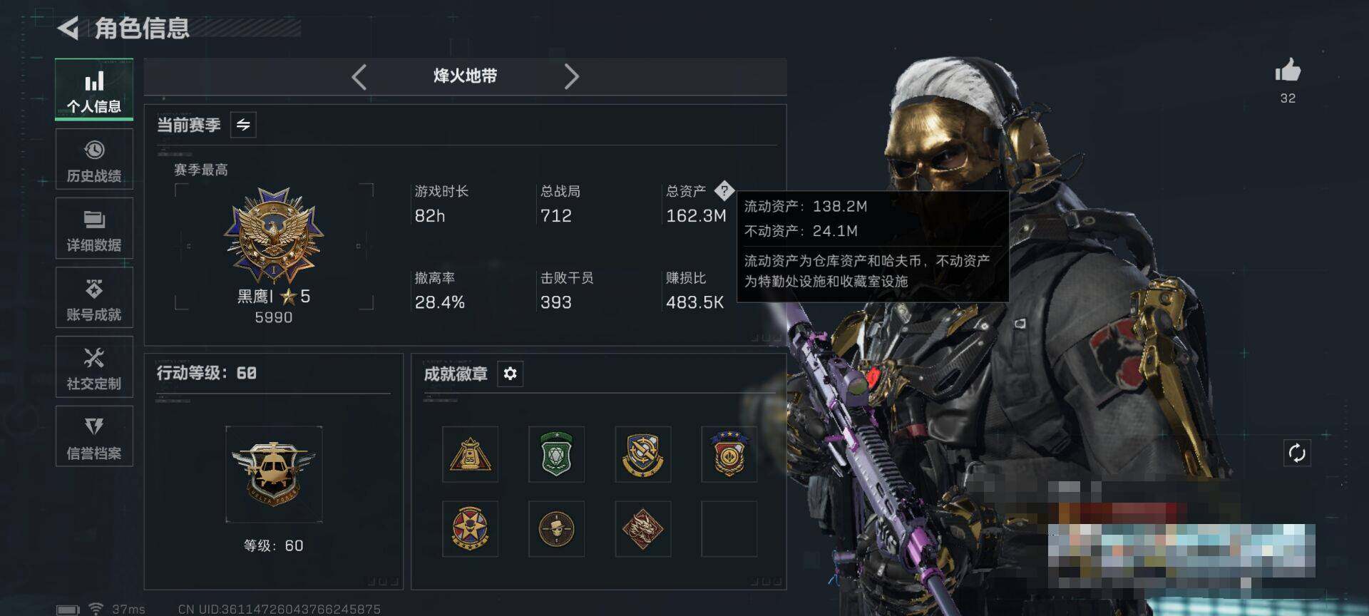总资产(M):161M/哈夫币(K):10781K/哈夫币(K):10781K/全面战场等级:33_
