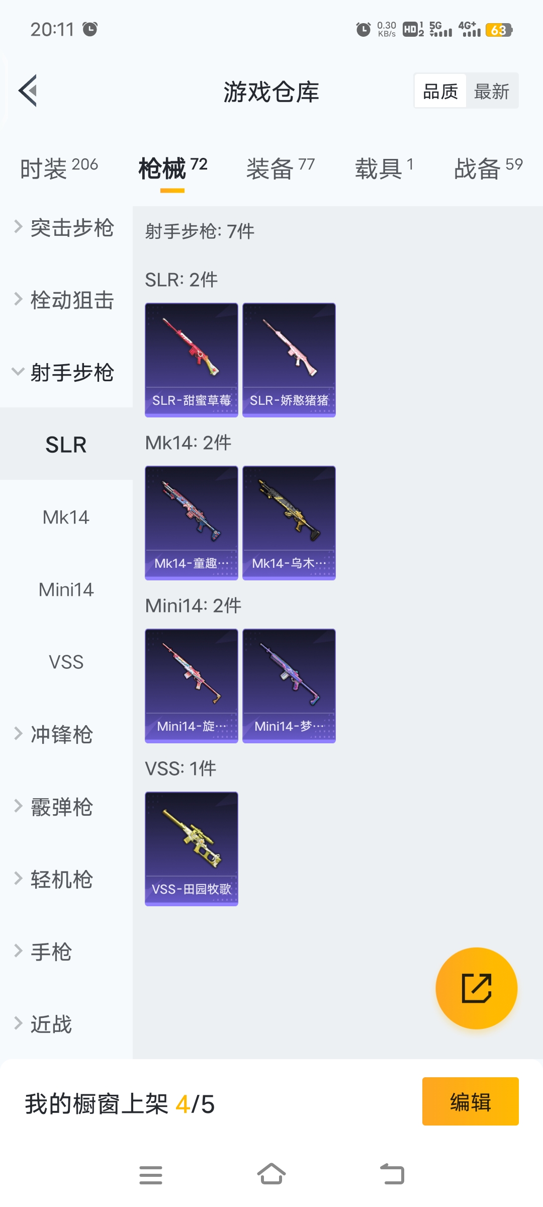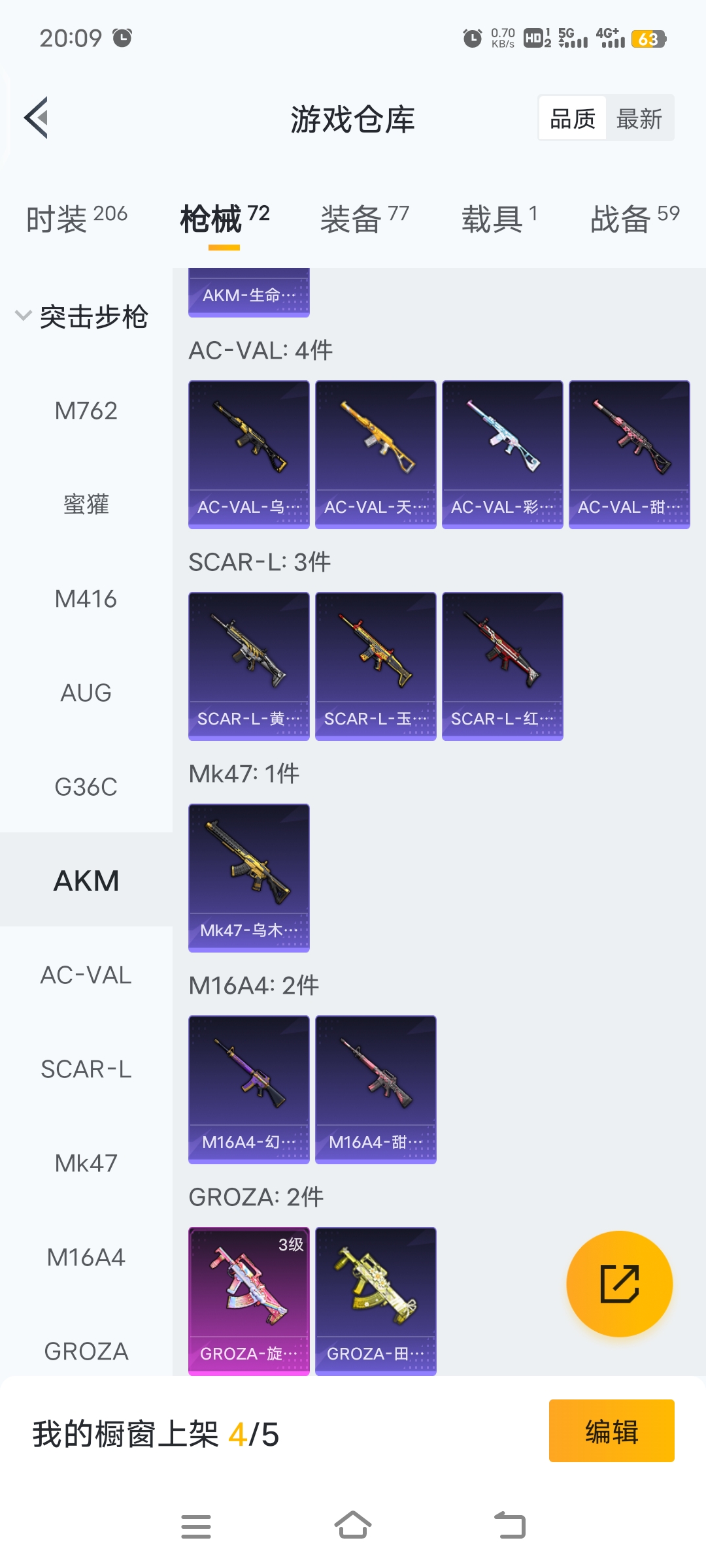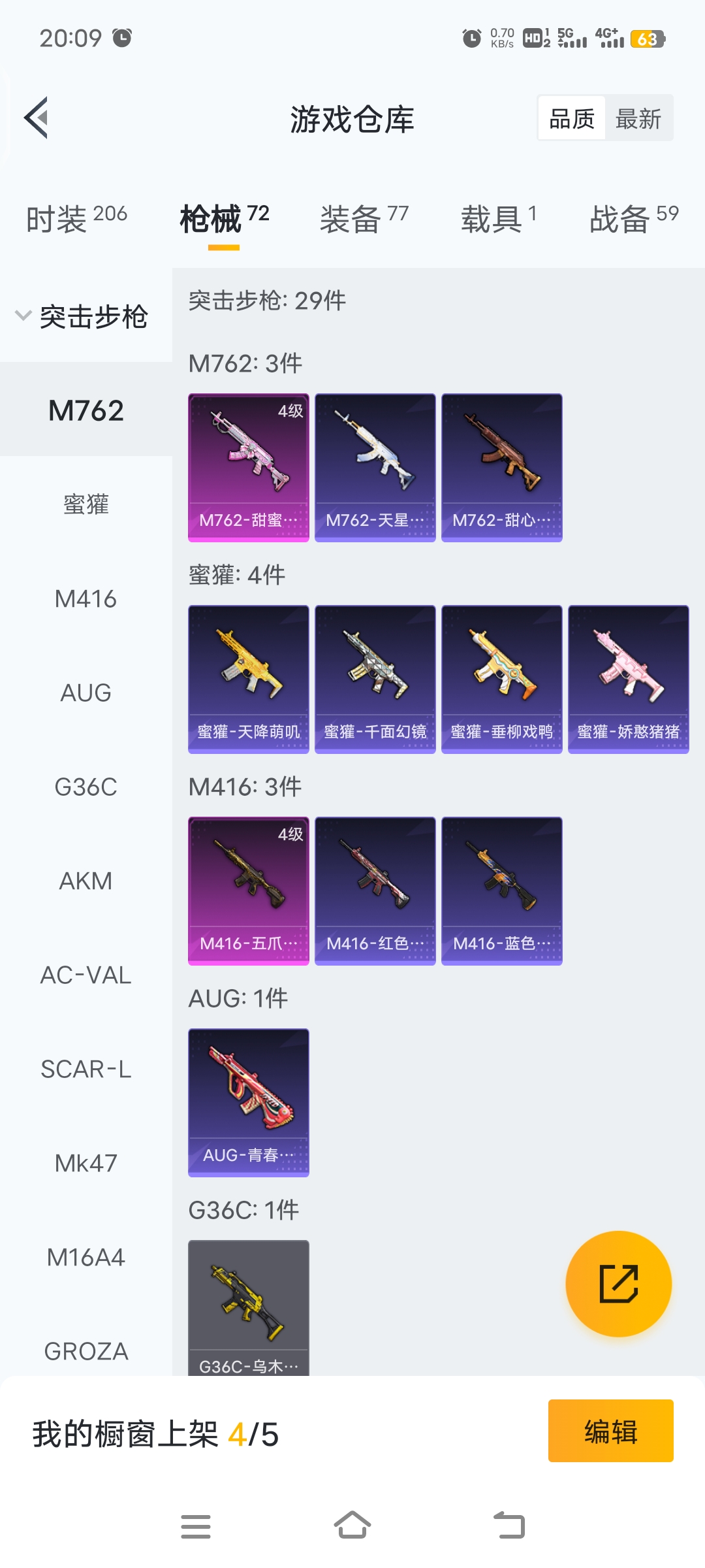 梦幻火箭等12套粉装,4级五爪,4级m762,3级GROZA特效枪