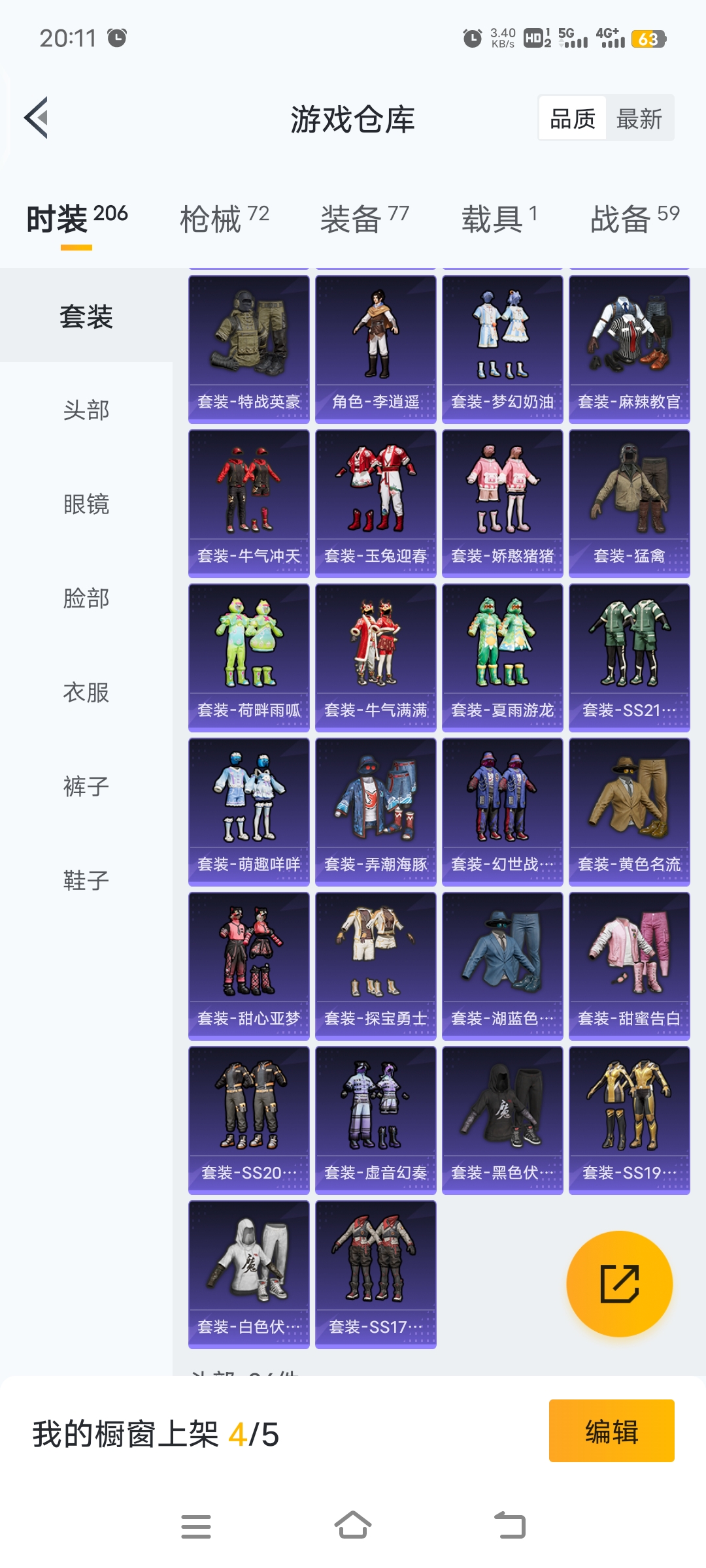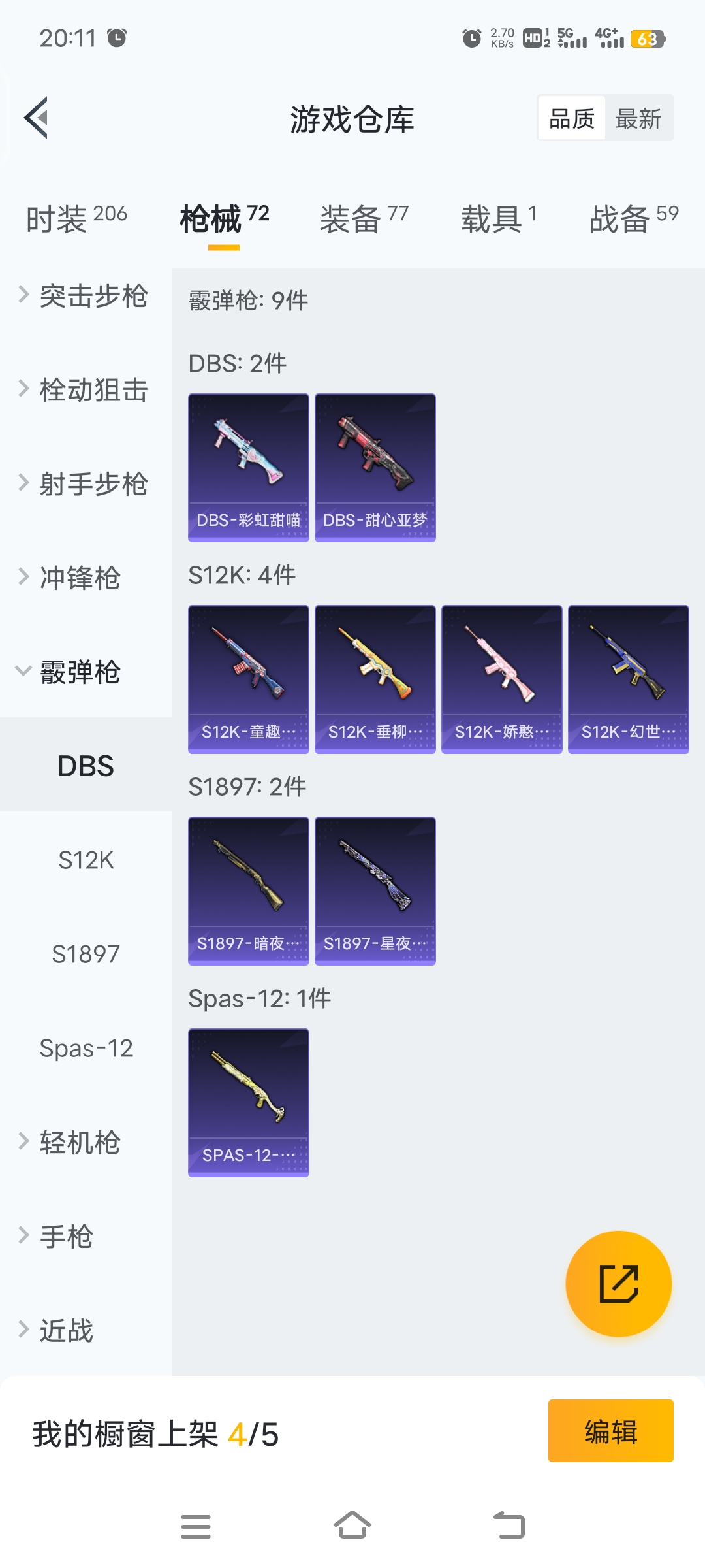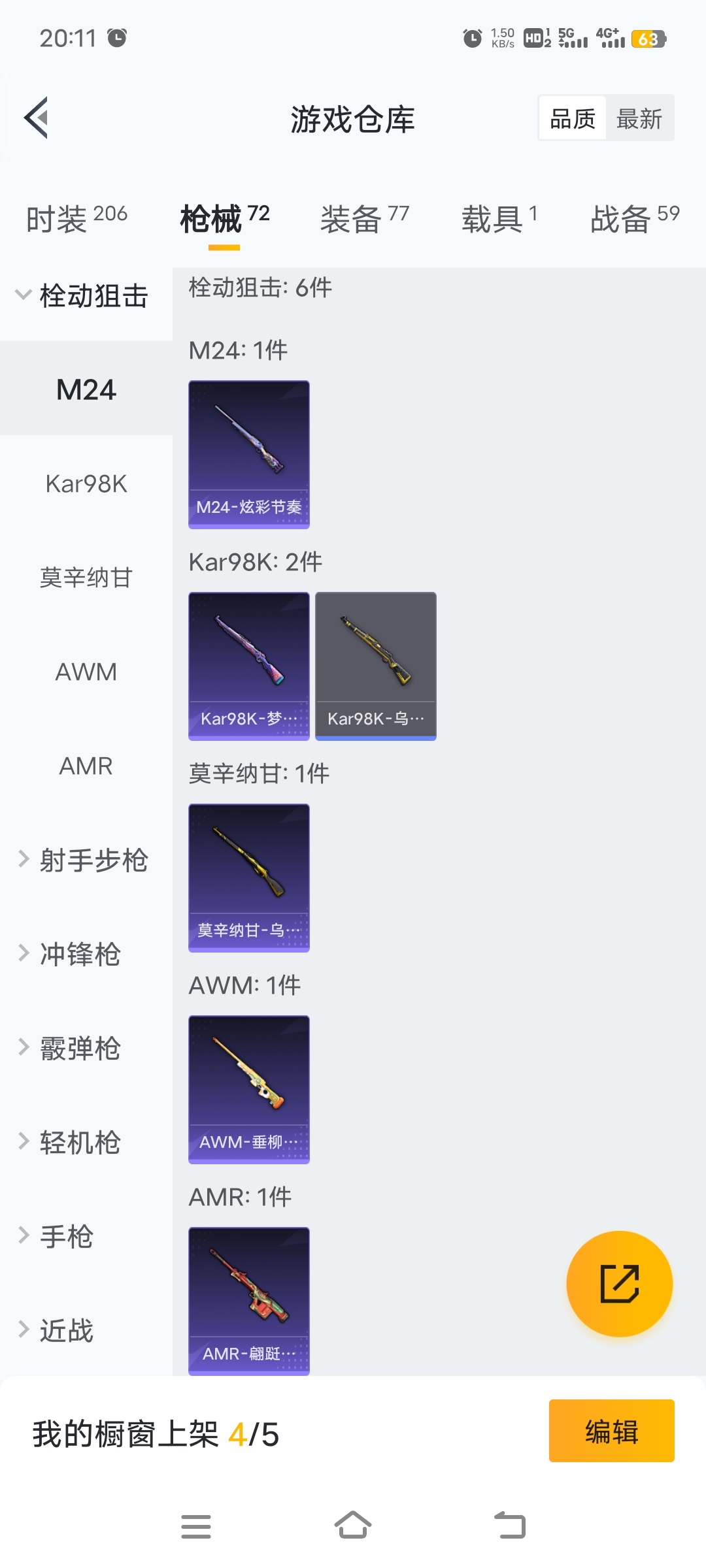 梦幻火箭等12套粉装,4级五爪,4级m762,3级GROZA特效枪