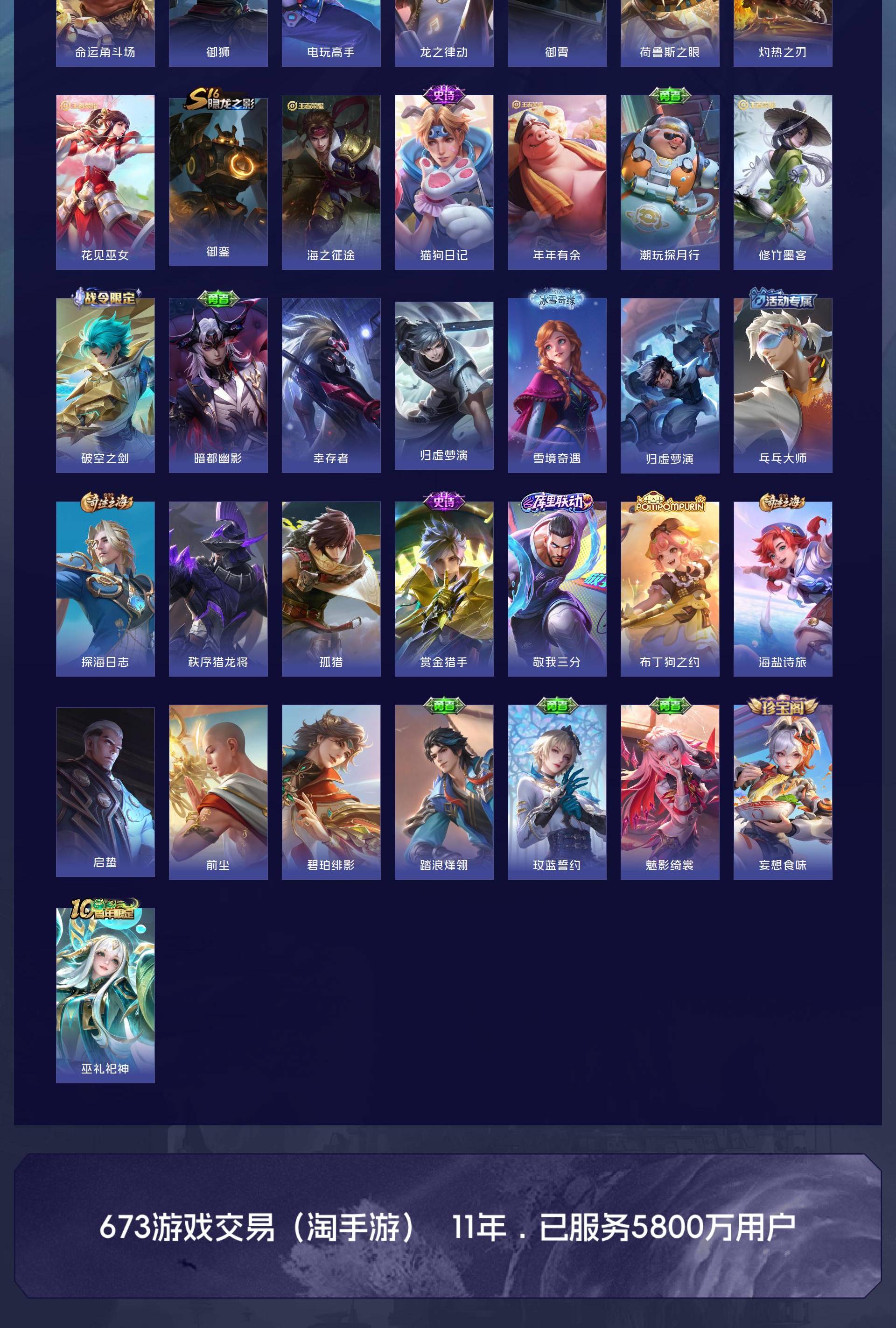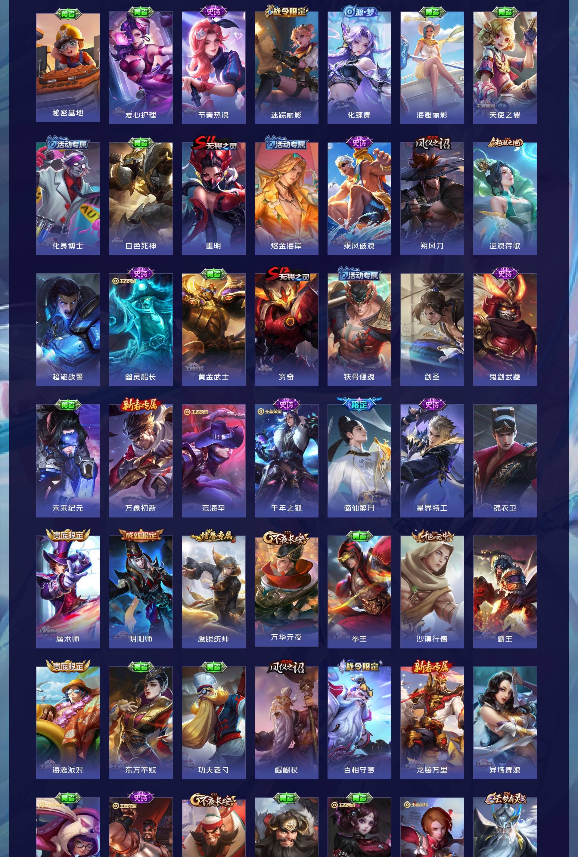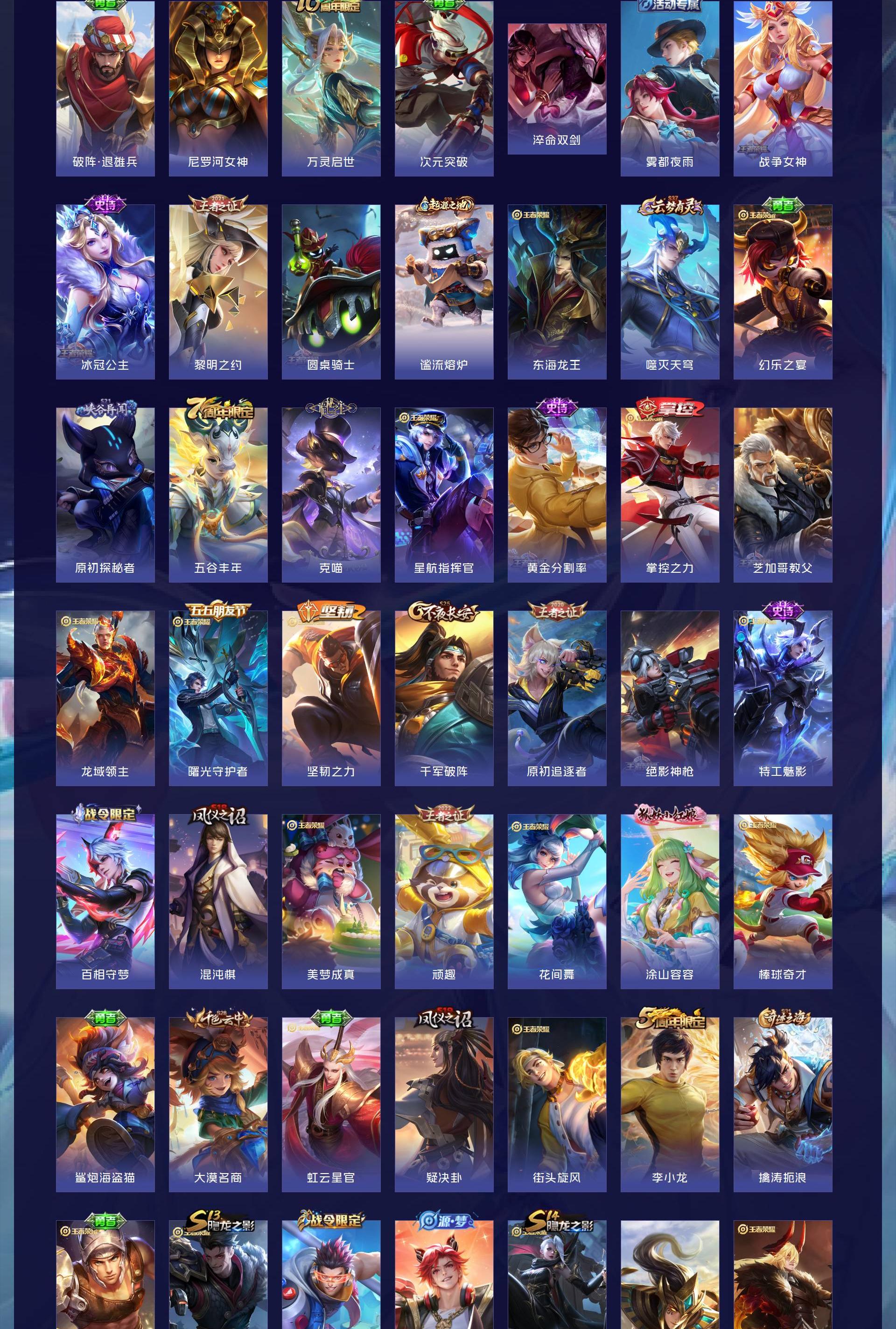 很多好皮肤怪盗基德,至尊宝孙行者宫本地狱之眼镜传说,澜逐花归海,和平连体老号,有碟中谍,有2次