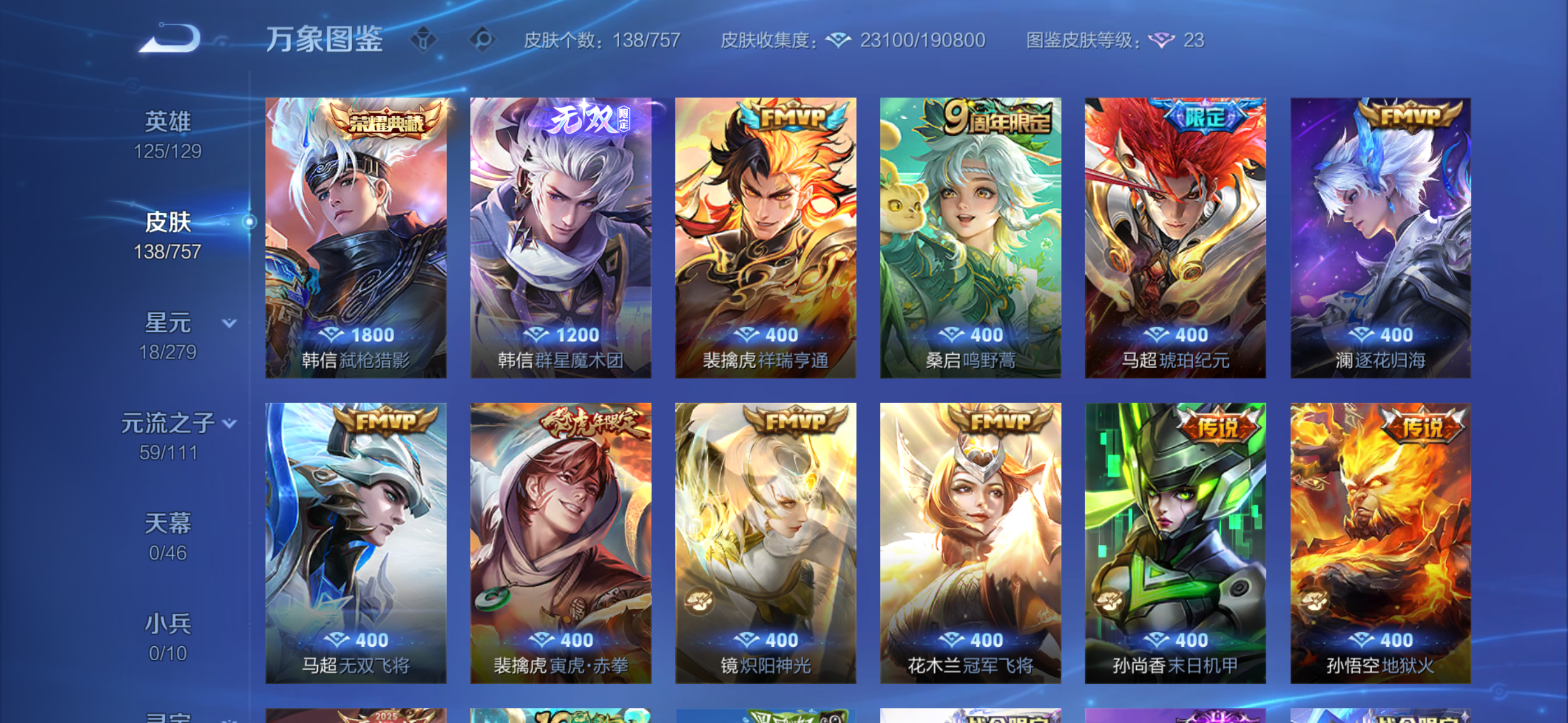 万战韩信马超 韩信差2个皮肤满皮马满皮 镜猴子孙尚香星传说