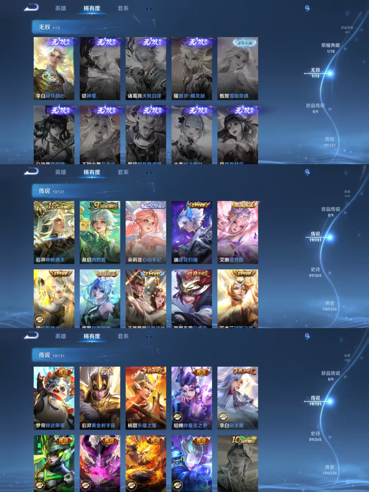 【史诗皮肤】 蔬乡物语 蔬乡物语 星界战将 岱宗 逐梦之光 冰霜恋舞曲 冰锋战神 飞衡 辉光之辰 青春决赛季 青龙志 布丁狗之约 谧流熔炉 电玩