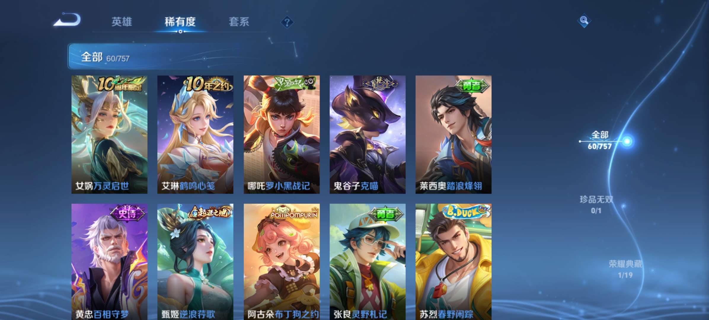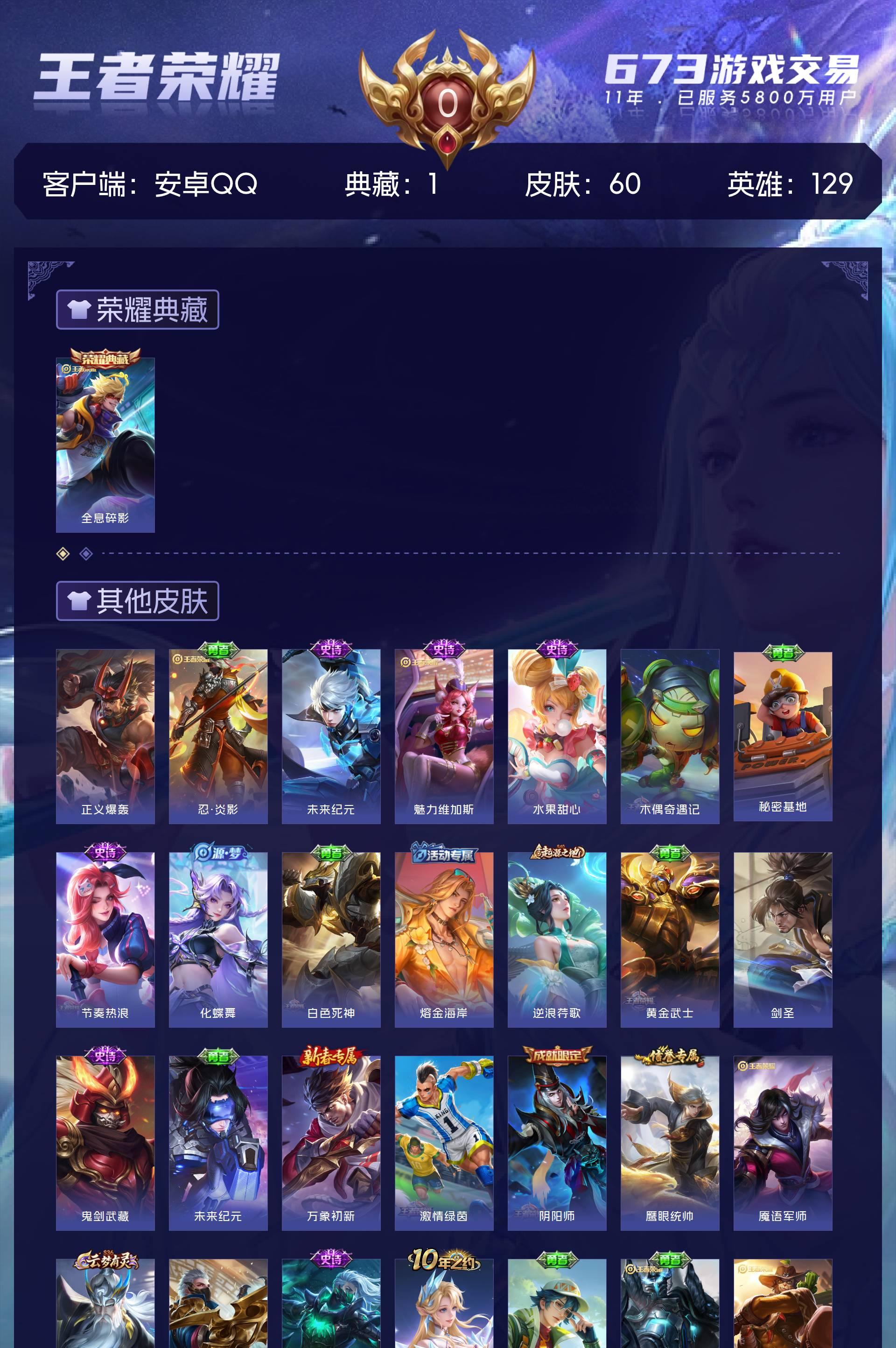 皮肤60 英雄129 永恒钻石 荣耀典藏1 其他皮肤62
