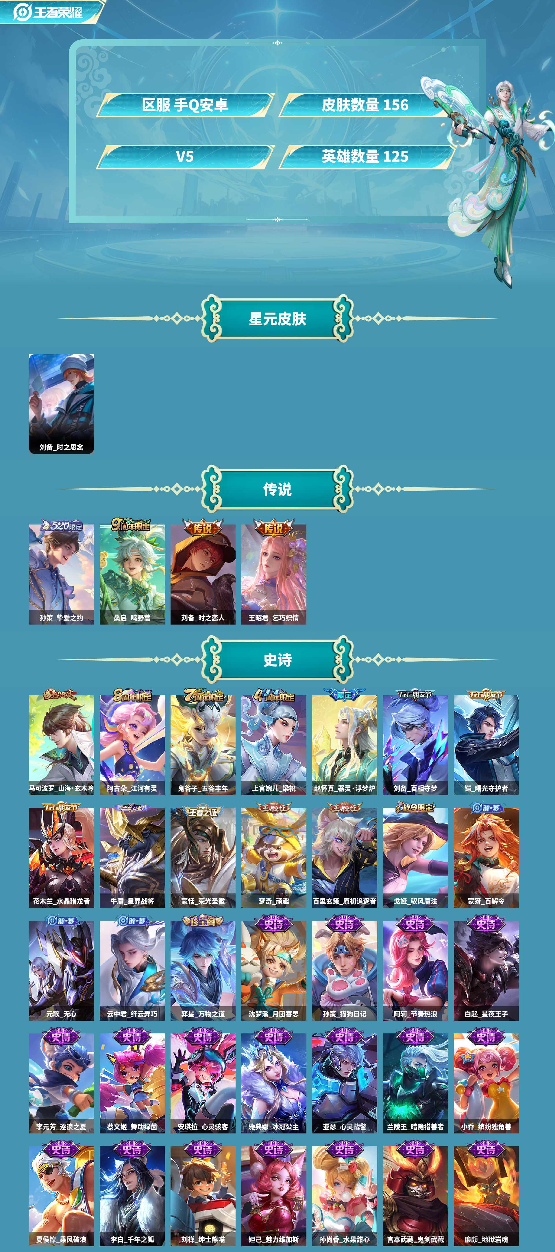 金标时之思念刘备/金标雅典娜/挚爱孙策皮肤数量155印记总数