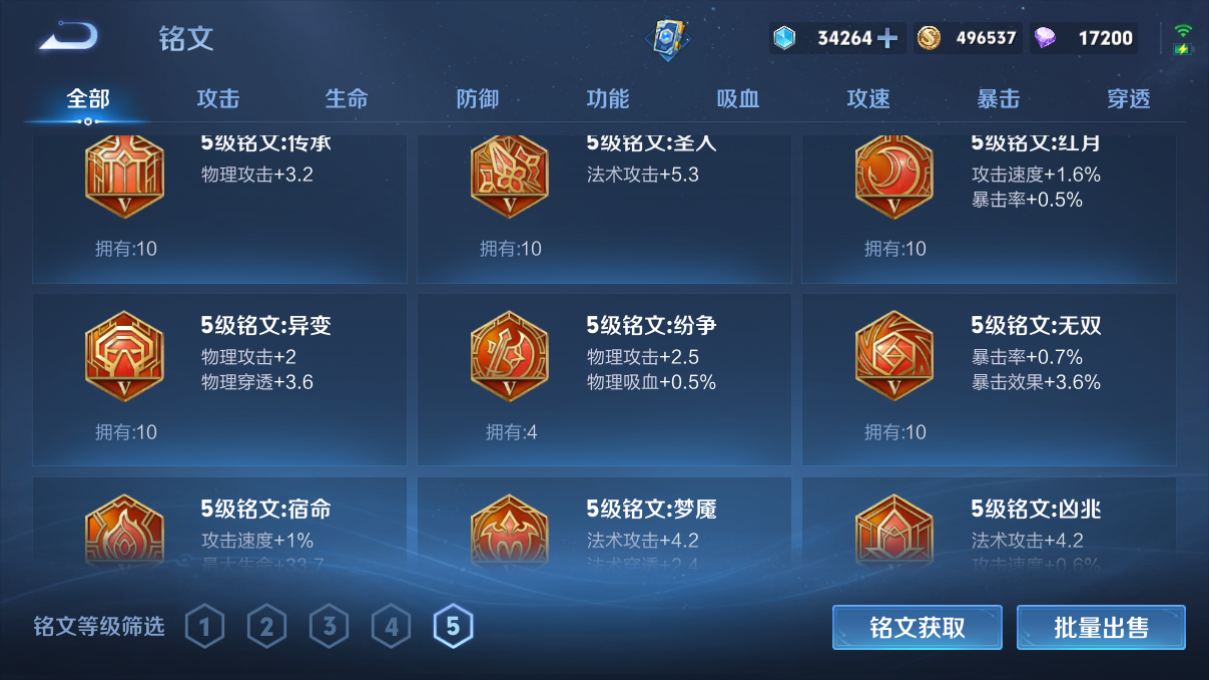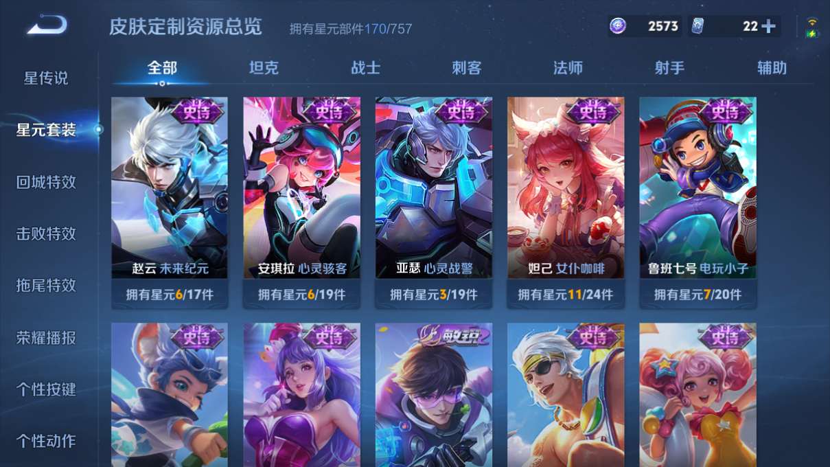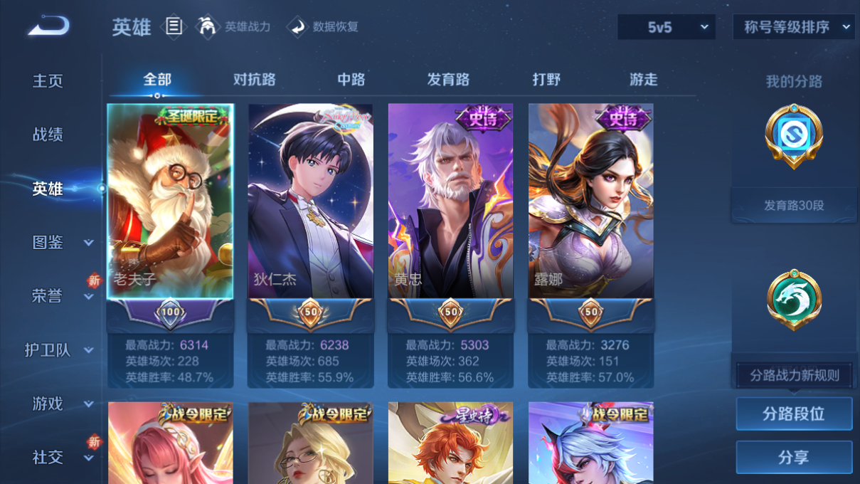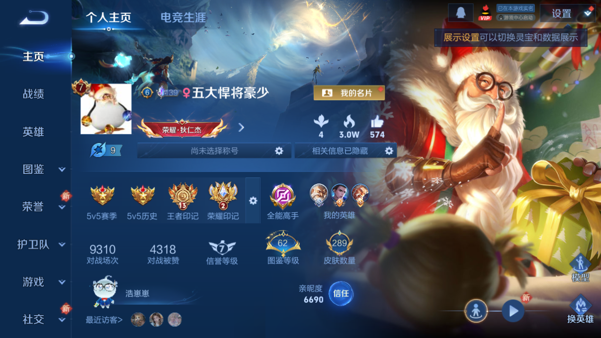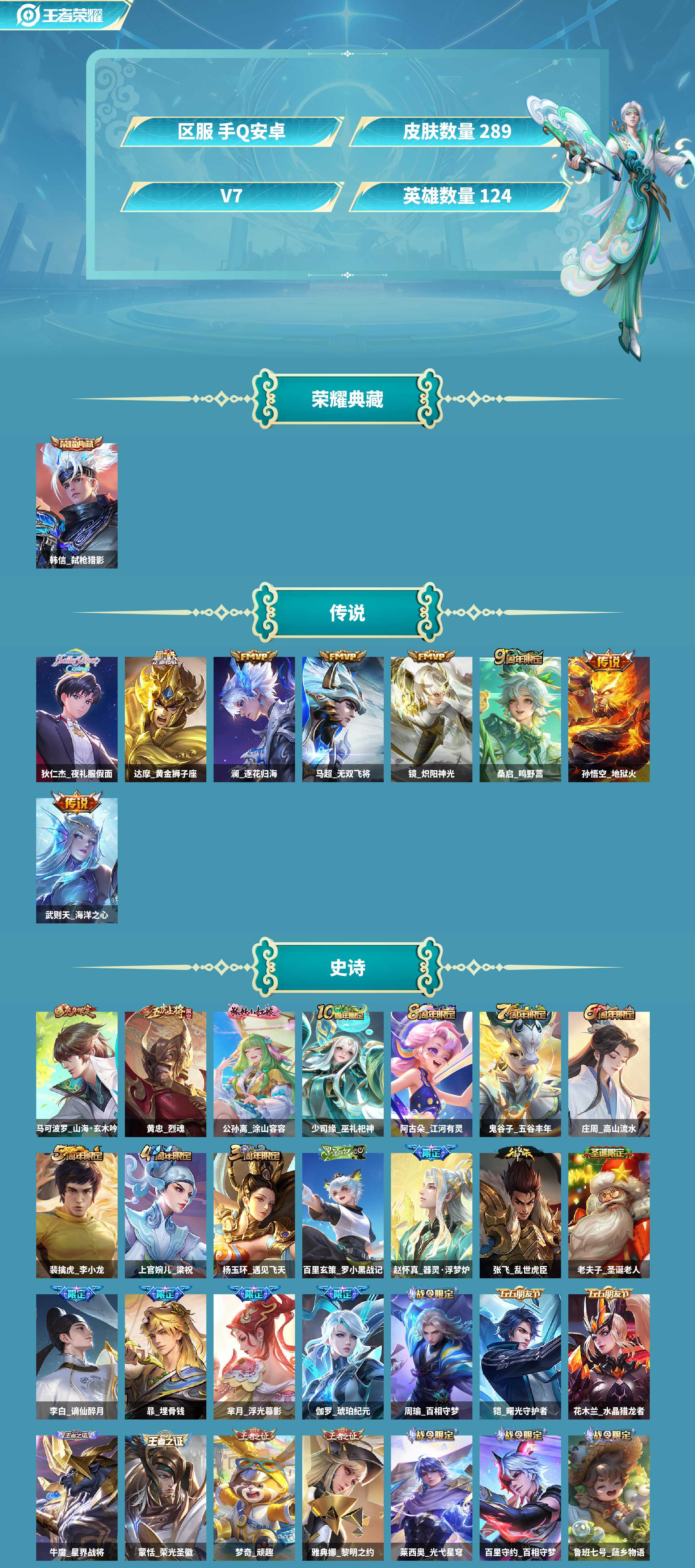 韩信典藏/假面/皮肤数量289印记总数13V7荣耀王者暂时不