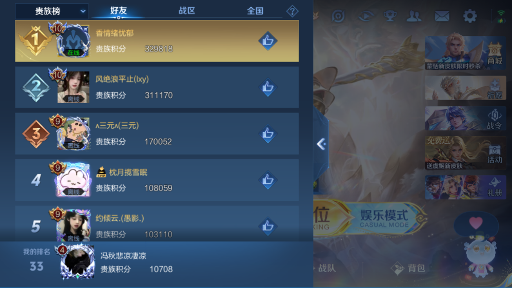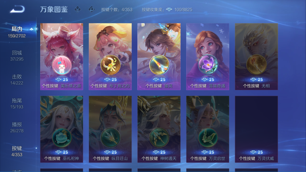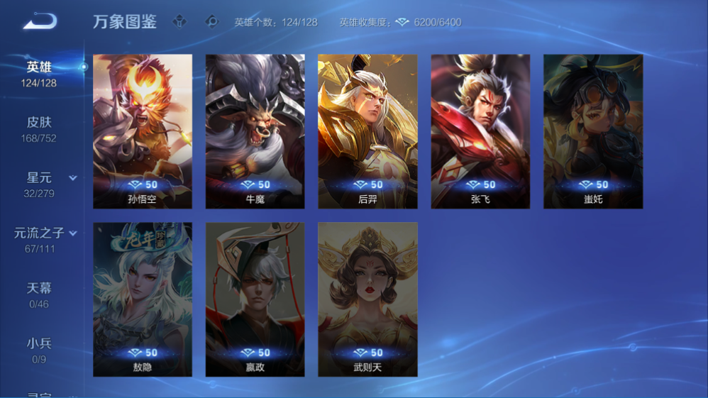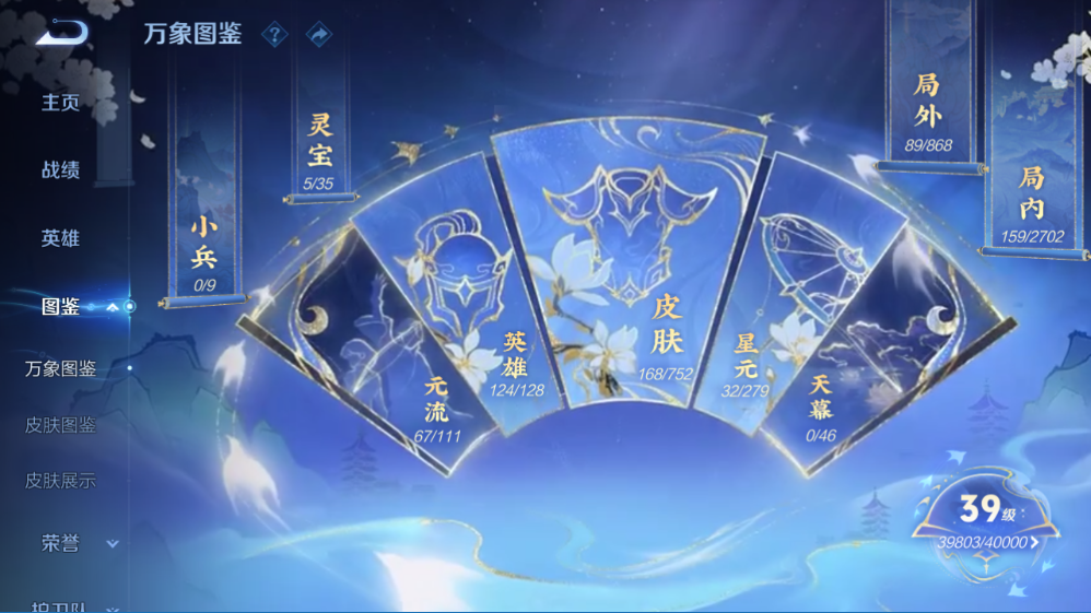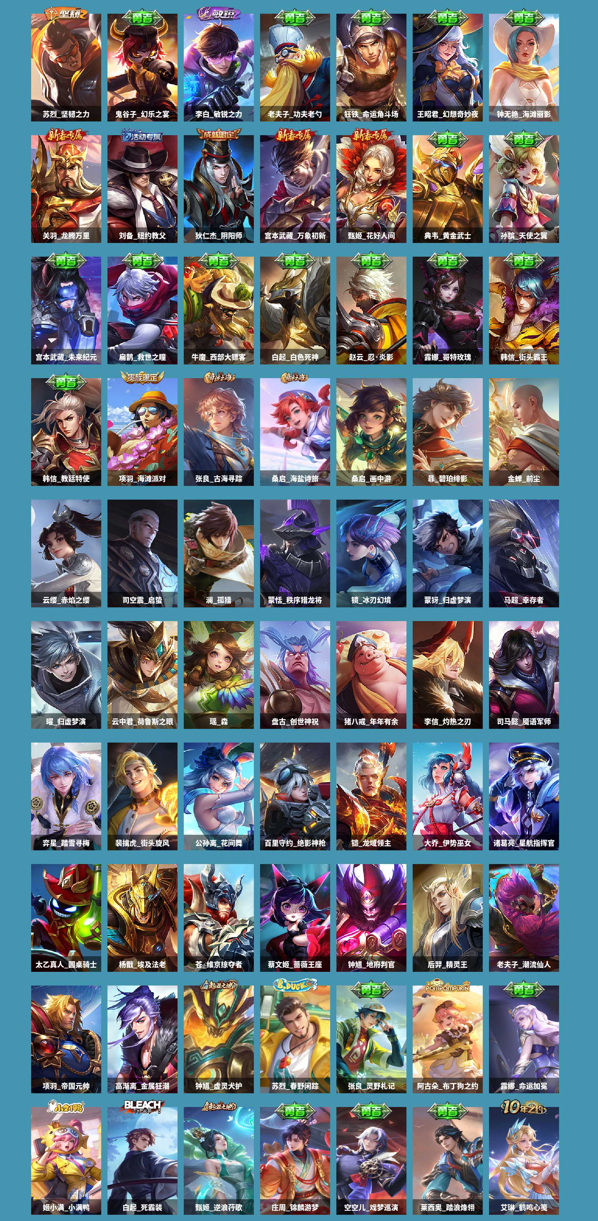 木兰典藏/嫦娥珍品/愿照澜/山海马可皮肤数量168印记总数6