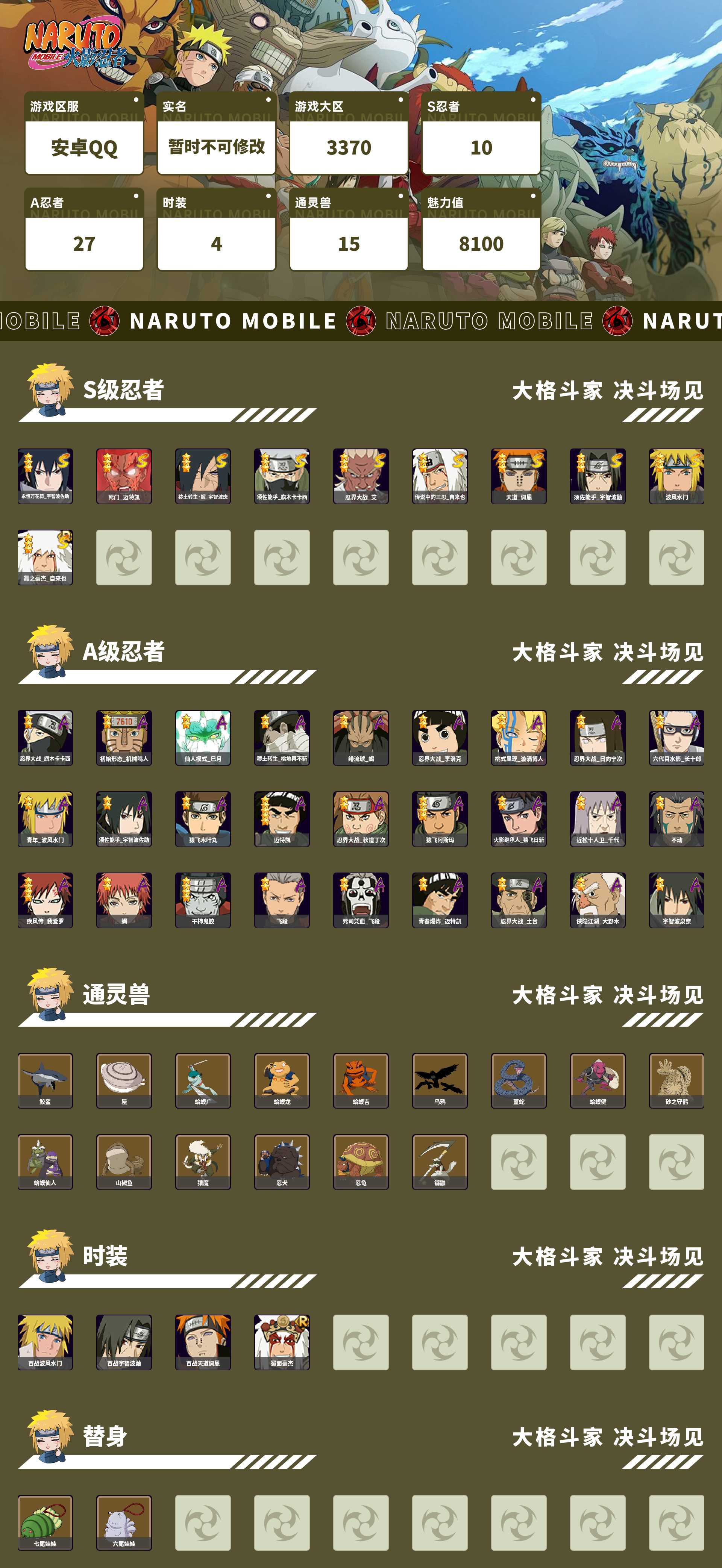 805w战力紫狗红狗解斑10S+27A战力805忍者总数13
