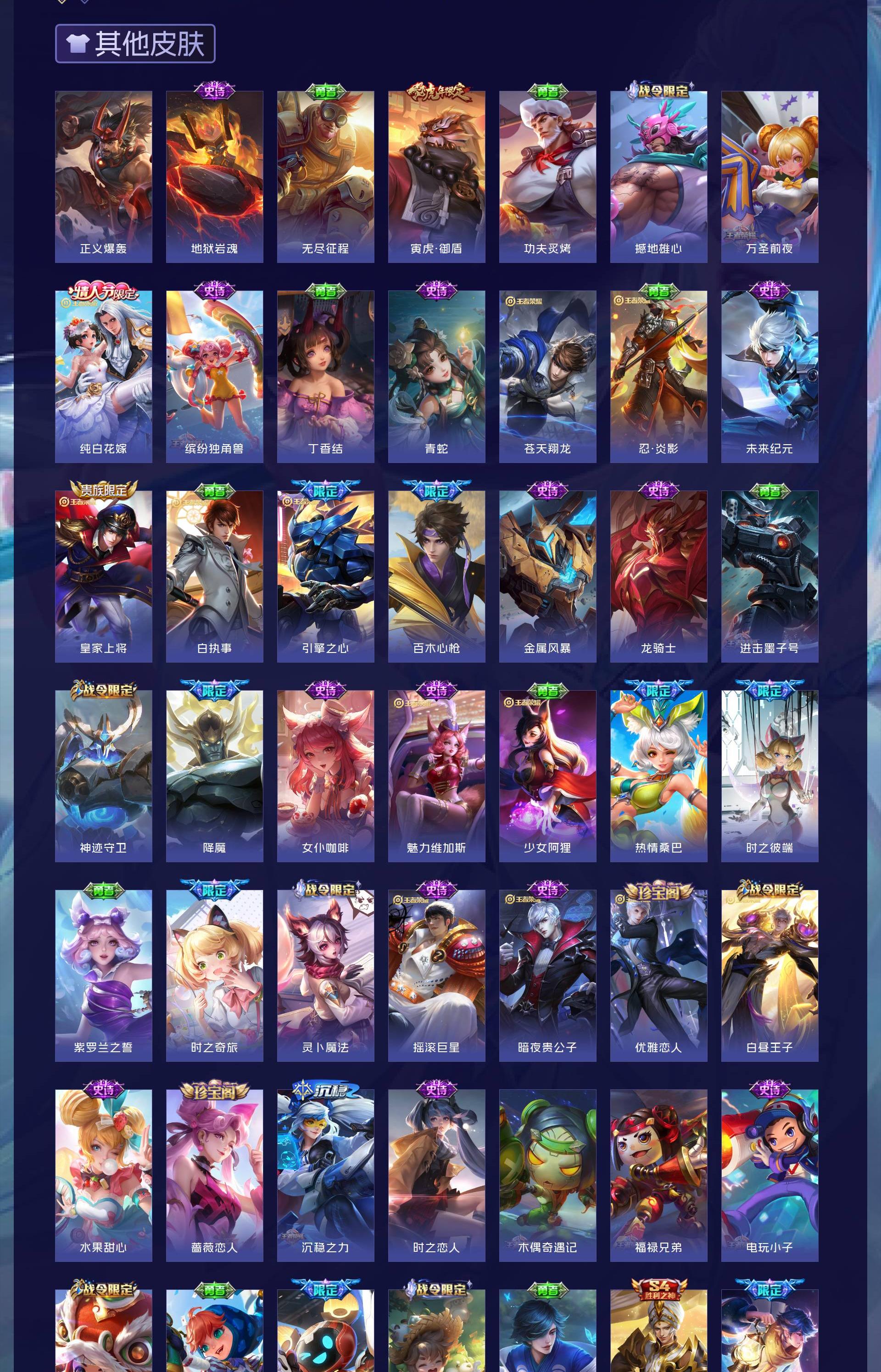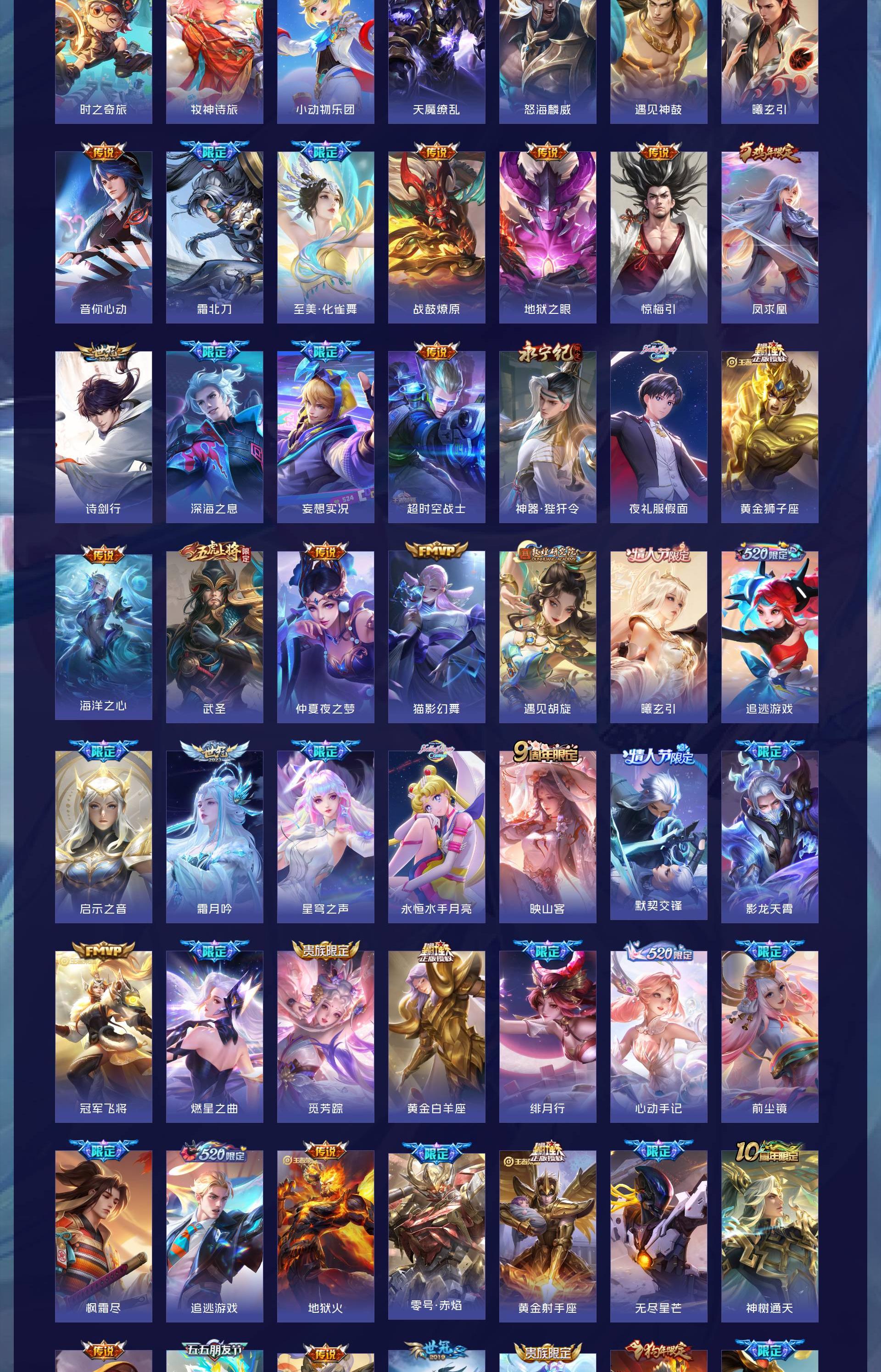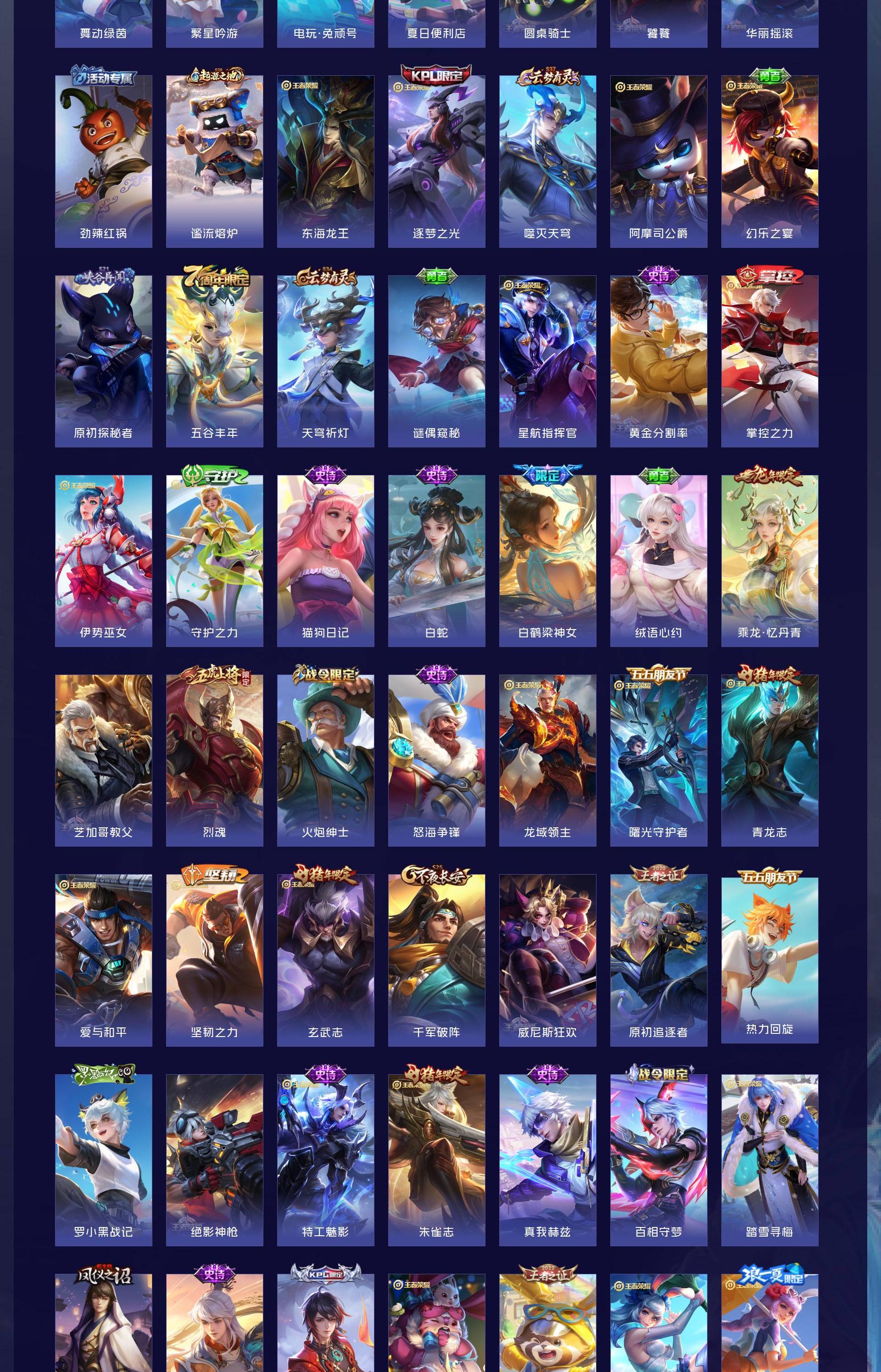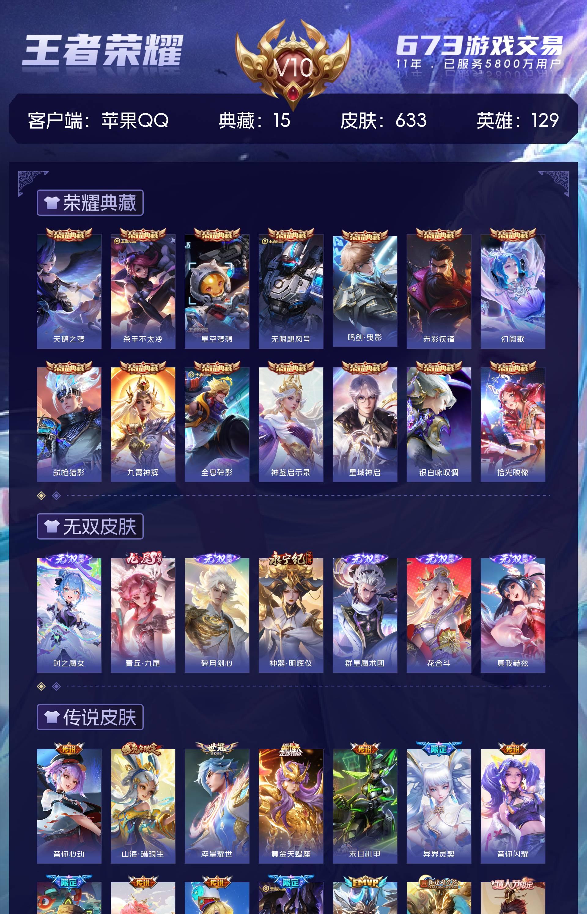 V10 皮肤633 英雄129 至尊星耀 荣耀典藏15 无双皮肤7 星传说9 传说102 其他皮肤515