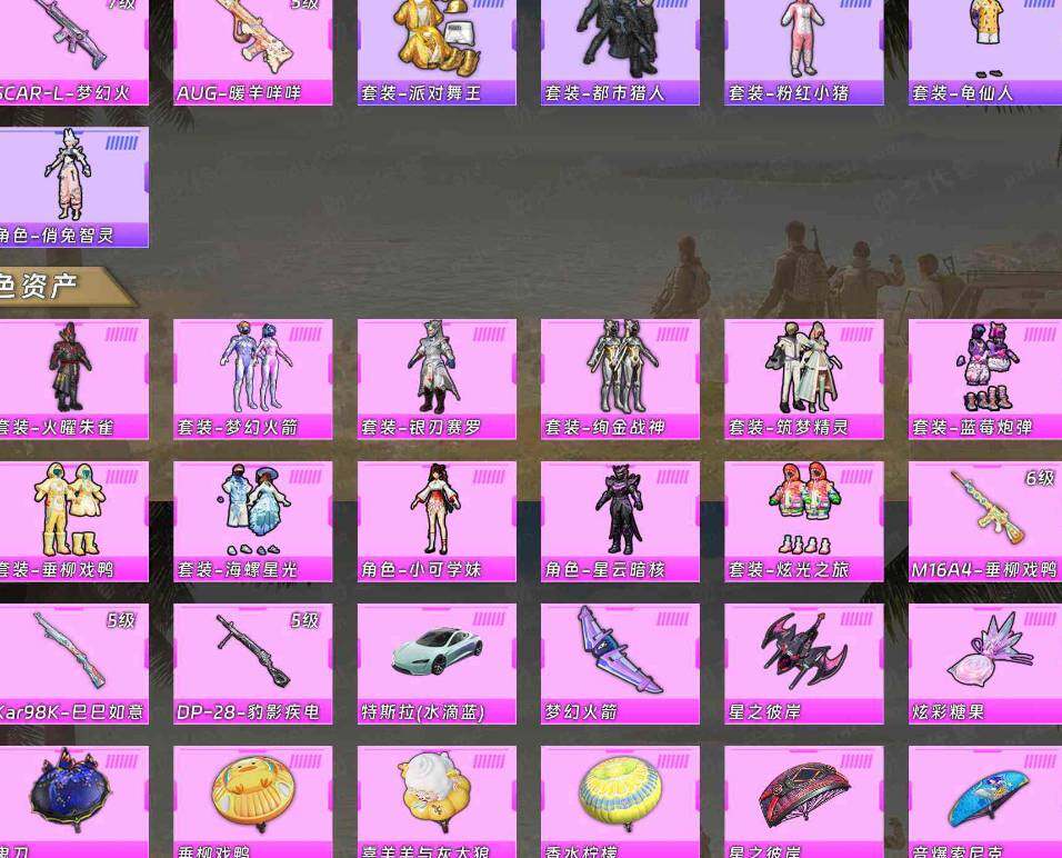 安卓 手Q-11粉装-5特效枪-1载具-3粉色飞行器-70294热力值-14王牌印记-190套装-216枪皮