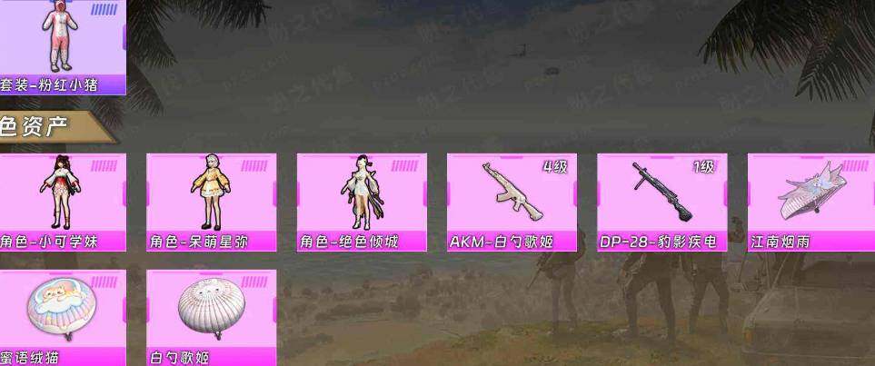 【粉色枪皮等级】:AKM-白勺歌姬(四级),DP-28-豹影疾电(一级)