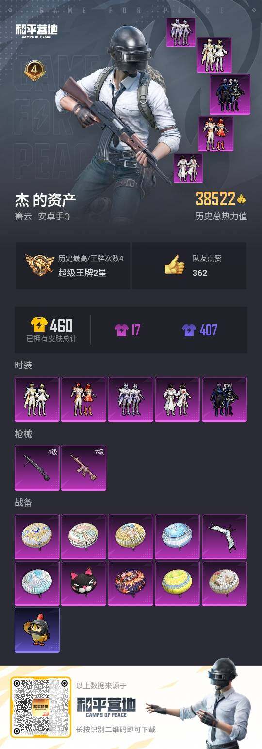 【A1513】安卓 【公主号 粉装-暗夜玫瑰,粉装-俏雪含霜,粉装-紫电风暴,粉装-圣光天使,粉装-霞光圣骑 M416-心之恋语(七级),DP-28-豹影疾电(四级)】手Q-5粉装-2特效枪-0载具-1粉色飞行器-38522热力值-4王牌印记-95套装-130枪皮