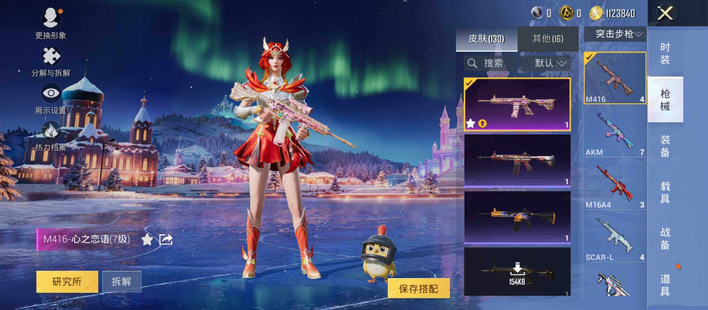 【粉色枪皮等级】:M416-心之恋语(七级),DP-28-豹影疾电(四级)