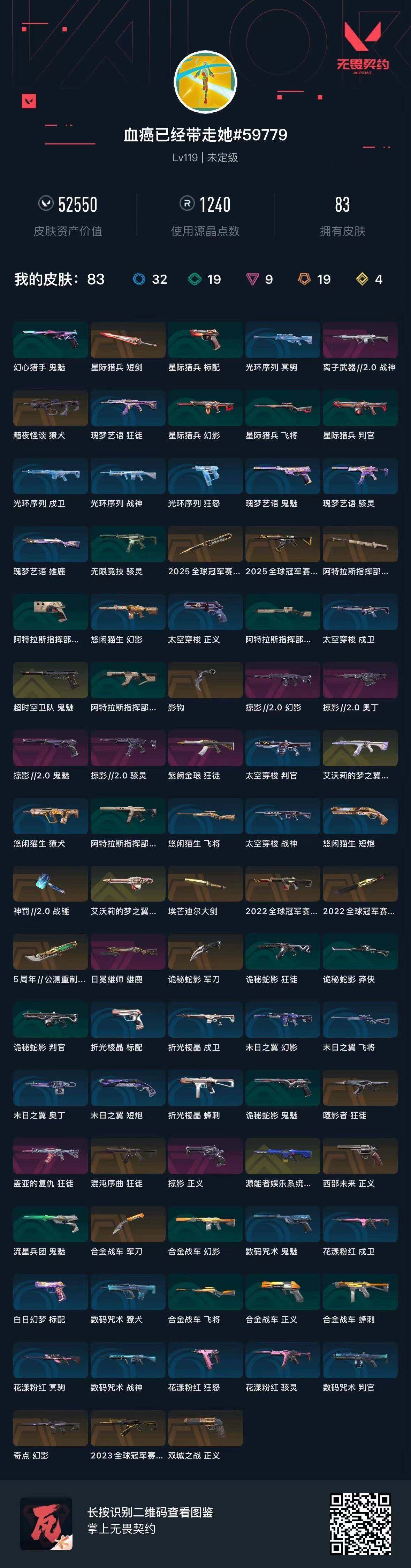 【WWC974】终极*19/传奇*4/卓越*9/皮肤*83/等级*119/段位:未定级/2025全球冠军赛套装/2022全球冠军赛套装/《英雄联盟:双城之战》套装/掠影//2.0套装/幻棱/炼狱/维斯/暮蝶/钛狐/壹决/铁臂/捷风/雷兹/幽影/不死鸟/贤者/猎枭/蝰蛇/零/芮娜/奇乐/尚勃勒/霓虹/斯凯/夜露/星礈/K/O/海神/盖可/黑梦/钢锁/近战武器-2025全球冠军赛 蝴蝶刀/近战武器-2022全球冠军赛 蝴蝶刀/近战武器-影钩/近战武器-5周年//公测重制版 苍龙之刃/近战武器-埃芒迪