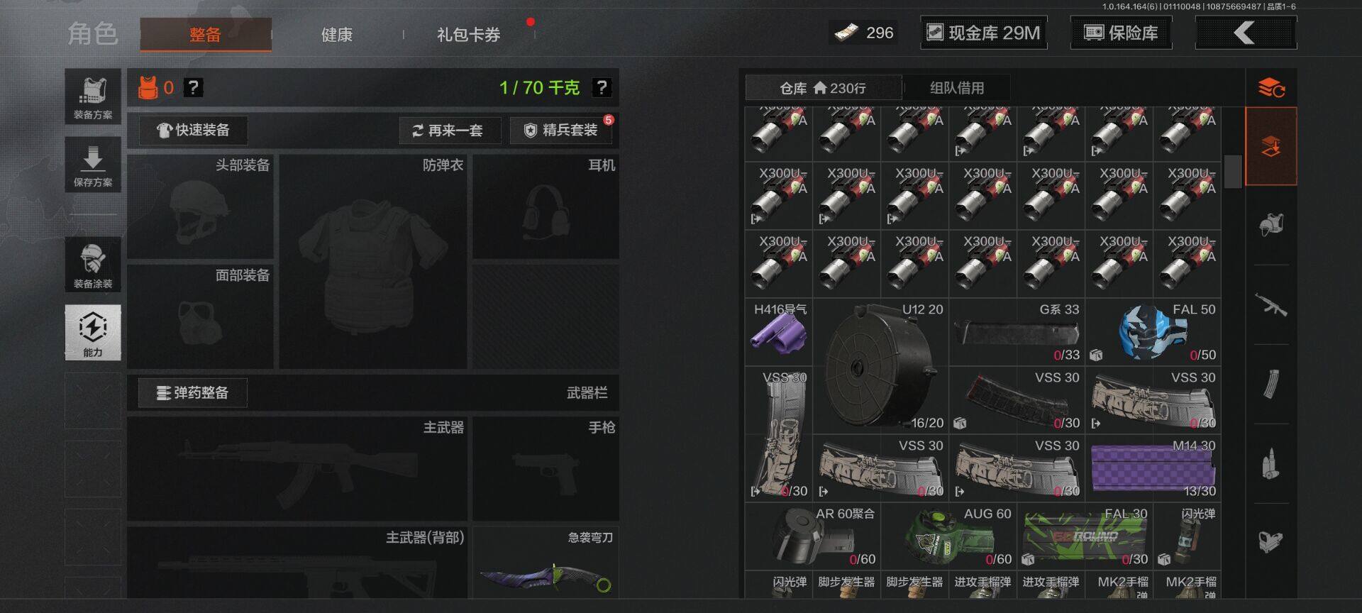 【AQQH258】等级:30/段位:大师/仓库价值(百万):45/急袭弯刀/脉冲马克西姆/利齿风暴MPX/伦琴幻影FAL/旗帜AEK/告丧夜曲AUG/战术大师AN94/蓝色咆哮H416/旧王圣谕QBZ191/告丧夜曲AR57/浮鳞影青QBZ192/骑士之剑VSS/典礼武备MK14