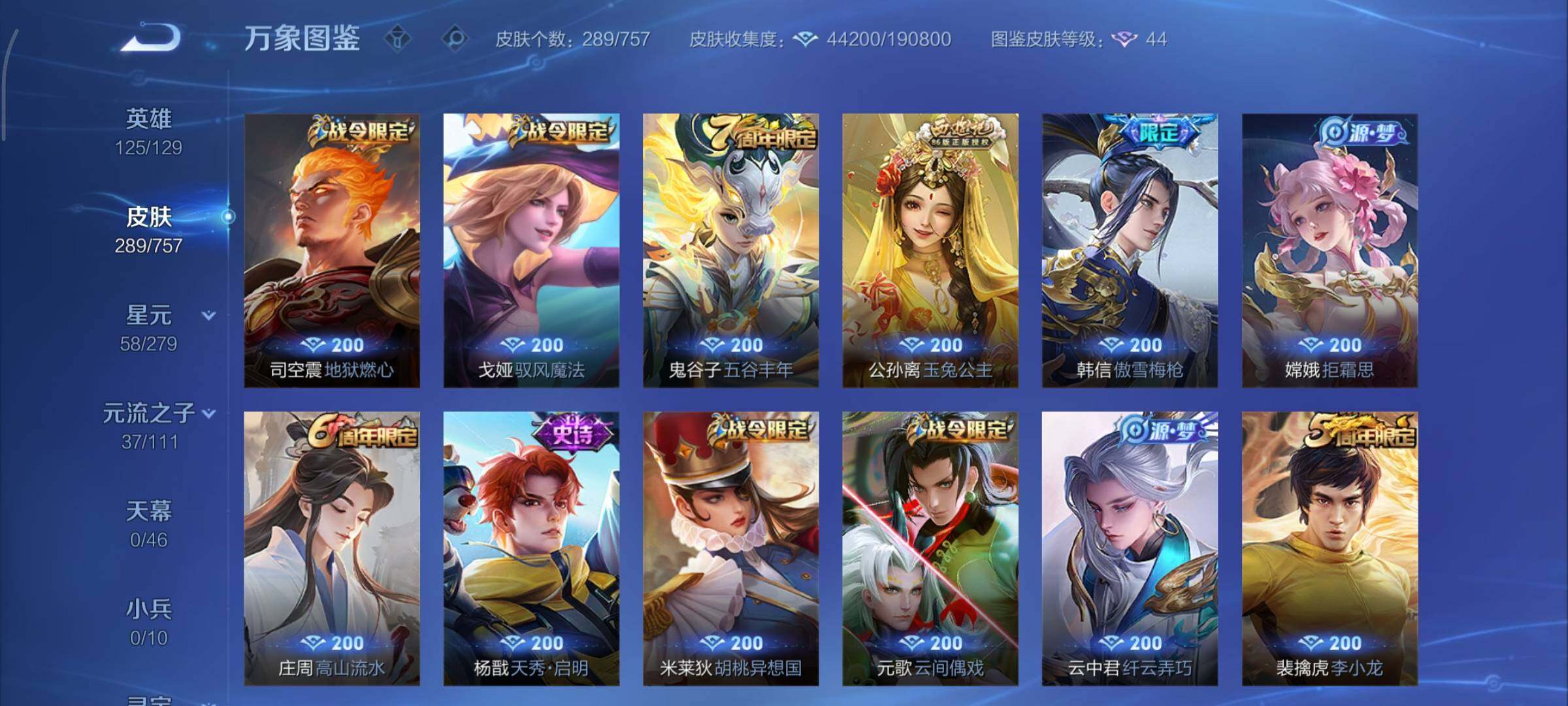 【荣耀典藏】:韩信弑枪猎影【无双皮肤】:韩信群星魔术团【珍品传说】:安琪拉酷洛米之心【星元皮肤】:宫本武藏幽冥之眼,孙悟空幽冥火【传