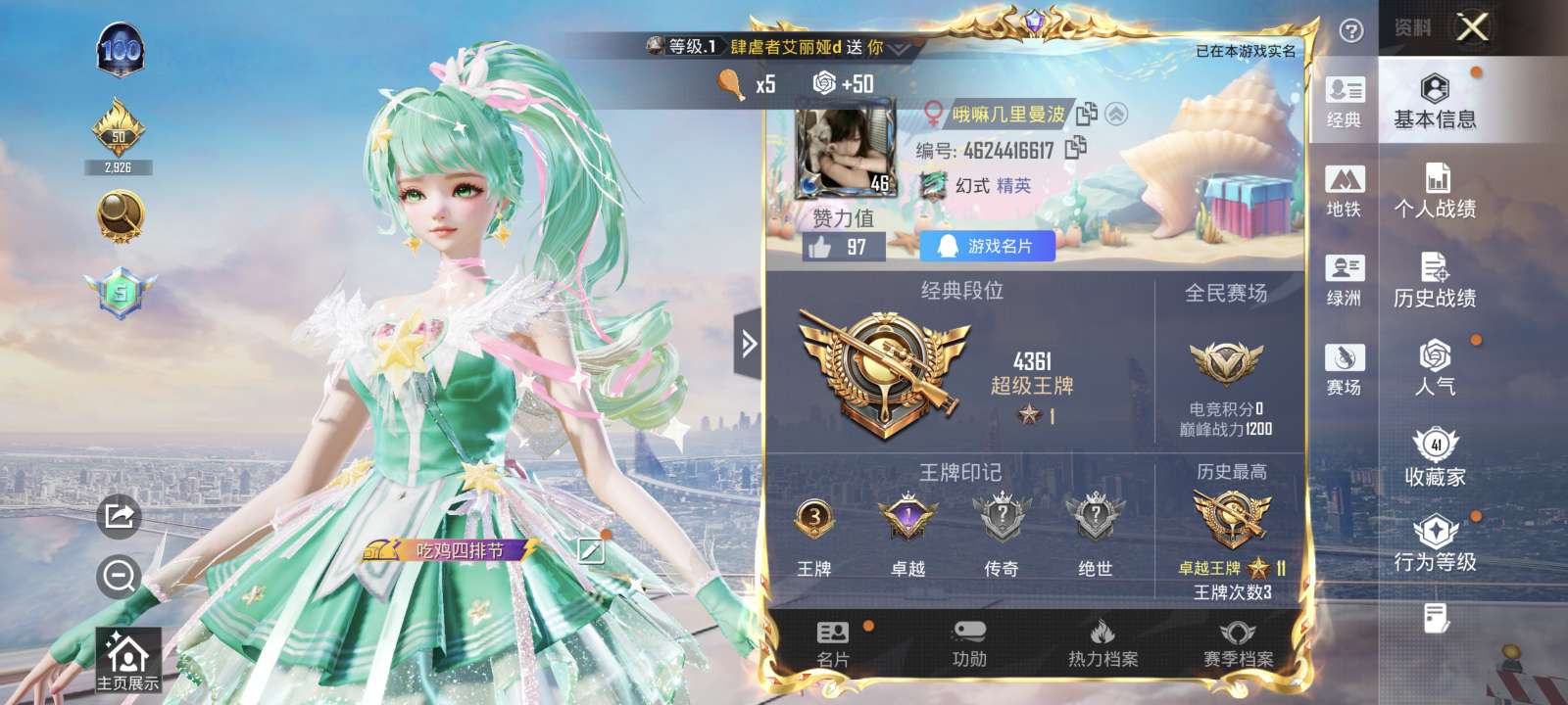 和平精英 精氪角色号 有热门套装 还有一个车皮 物质资源多 王者荣耀双端号 可小刀