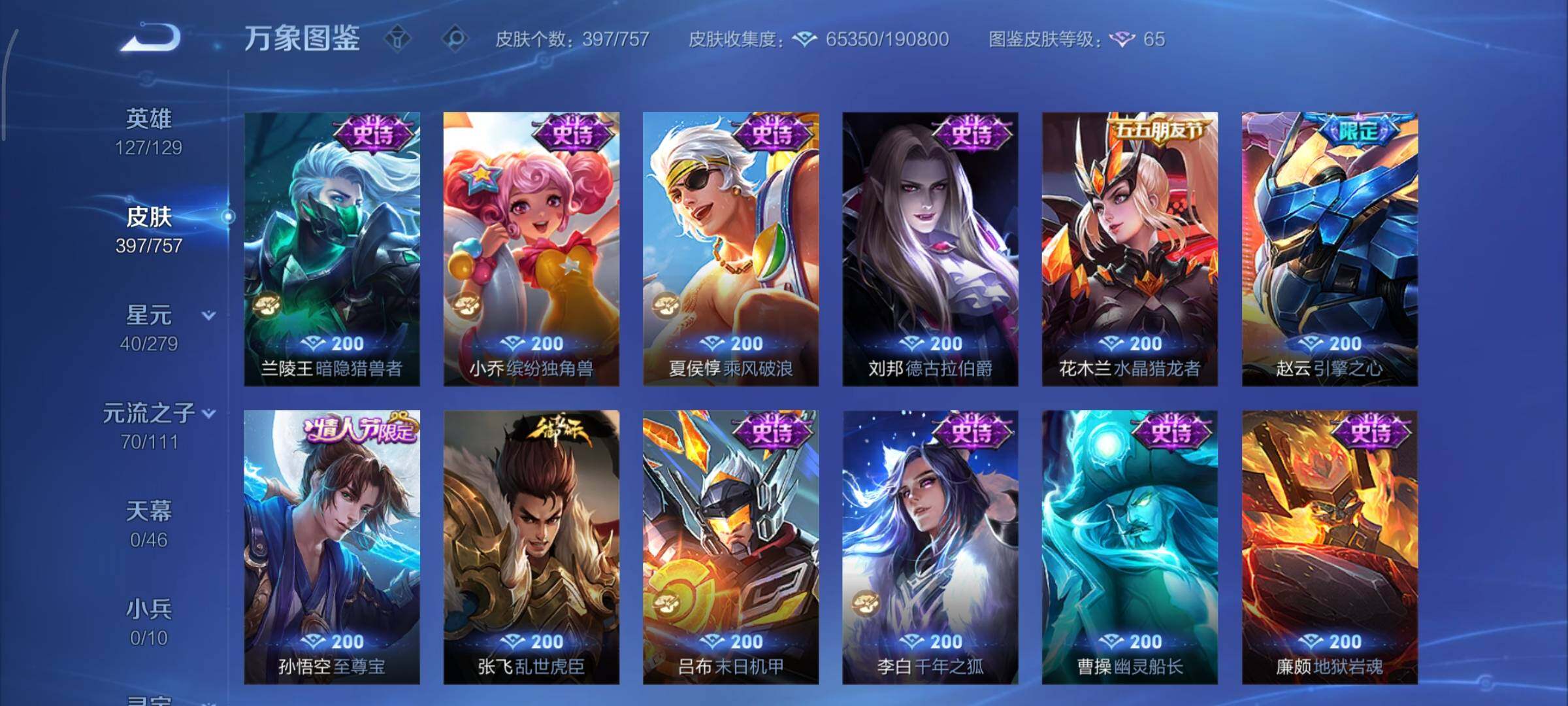 可换绑【V9精品号 貂蝉慕夏 双典藏 马超铠琥珀纪元 蛇年全套 多传说限定质量号】幸运值227 29按键,2星传说,7王者印记,五级铭文150,可二次KK7630,安卓Q-V9-397皮肤-2典藏皮肤-1珍品无双-45传说-106史诗【英雄全皮】:刘禅全皮,元歌全皮,司马懿全皮,孙权全皮,刘备全皮,苍全皮,马超全皮,戈娅全皮,空空儿全皮,影全皮【荣耀典藏】:孙尚香
