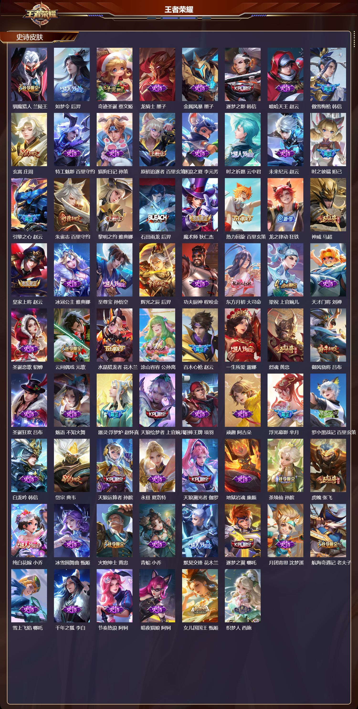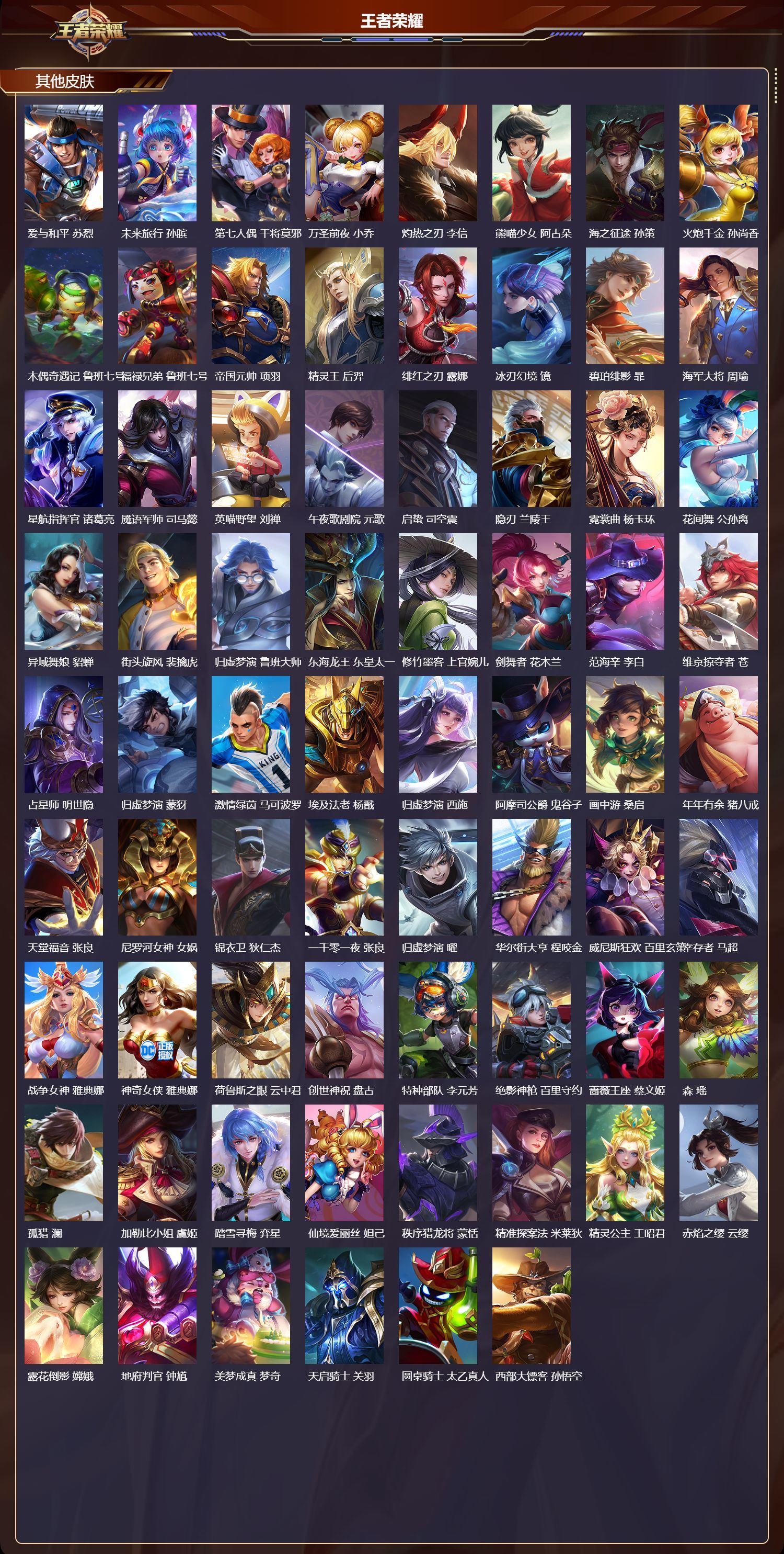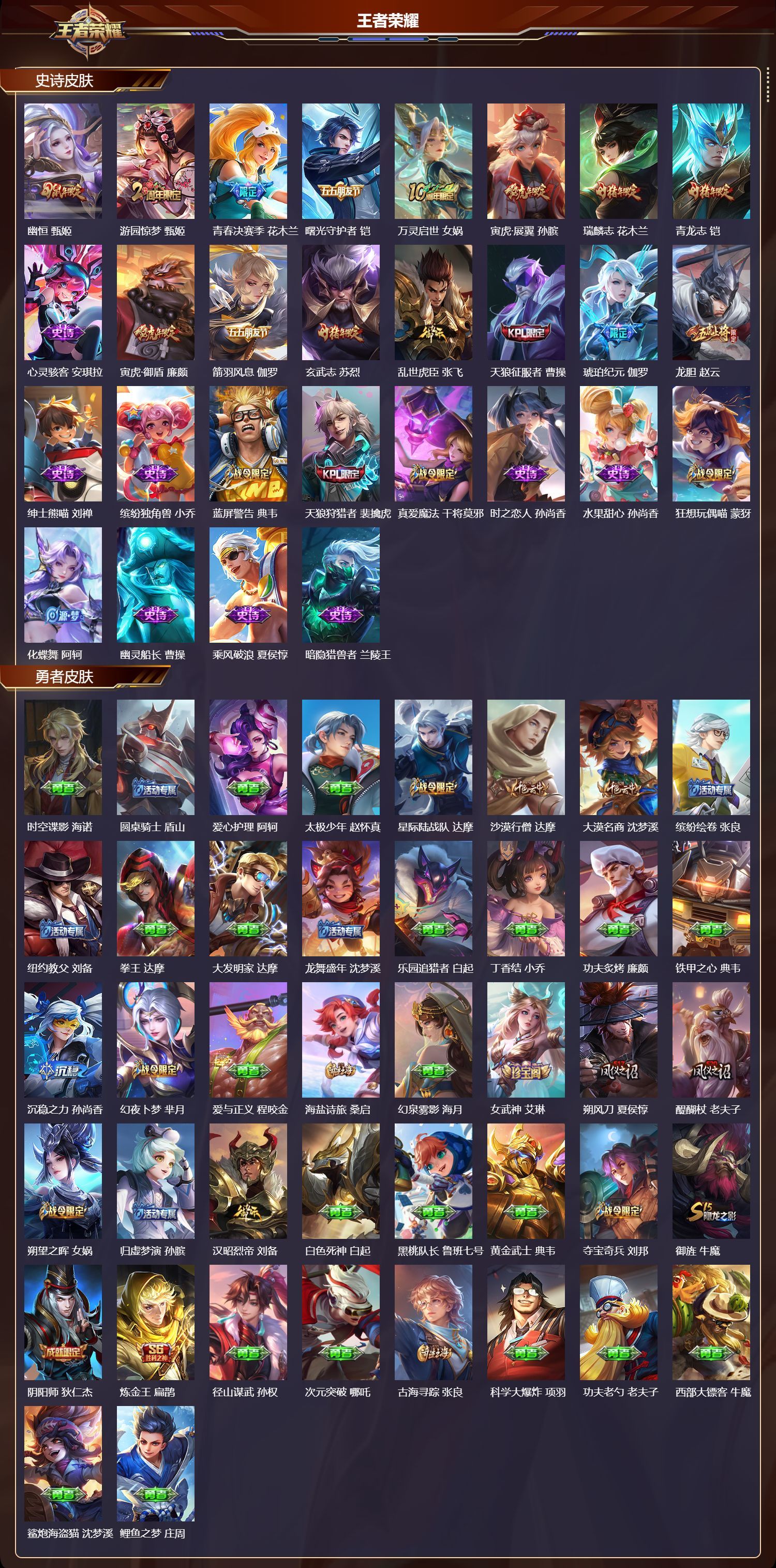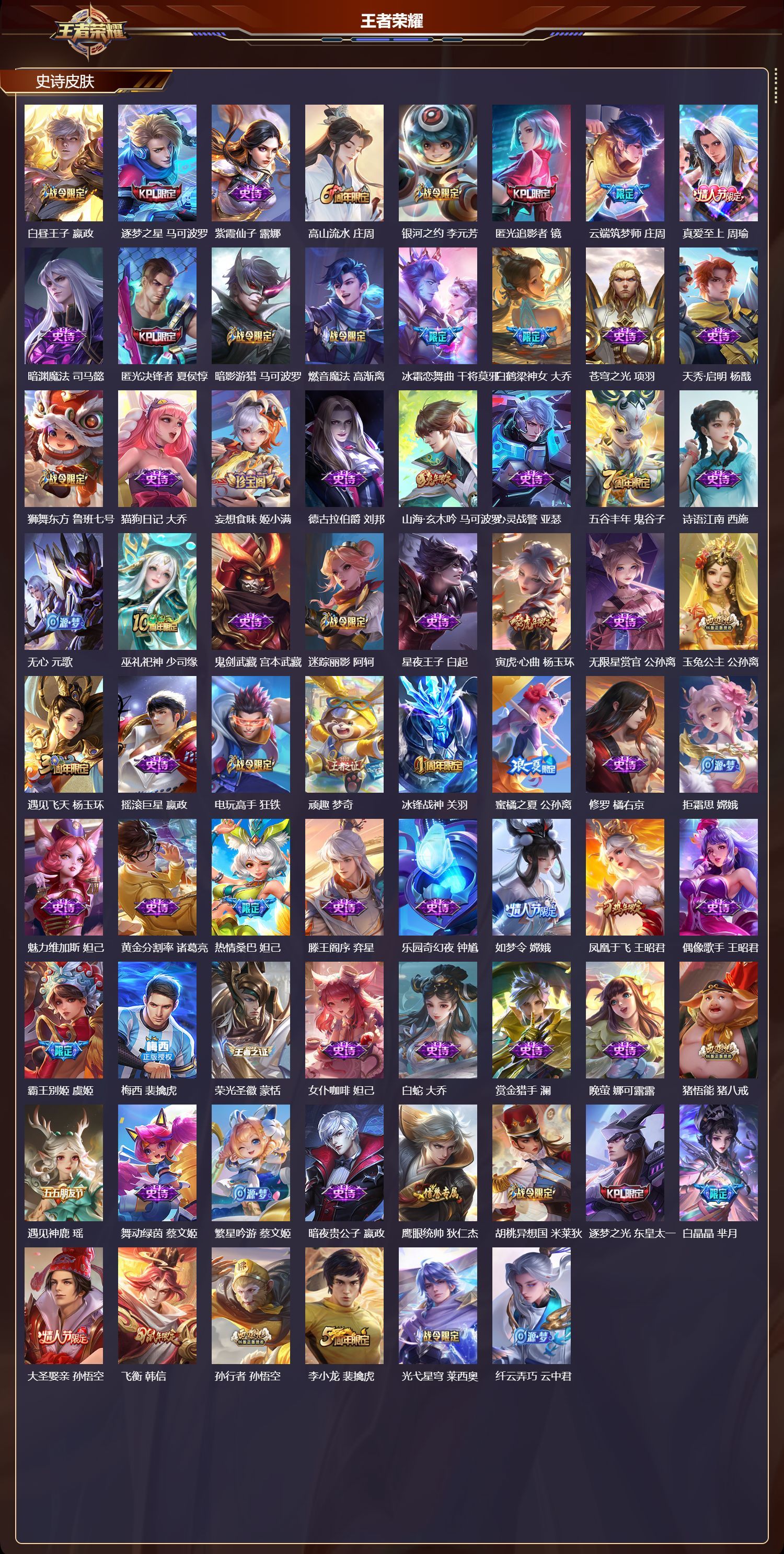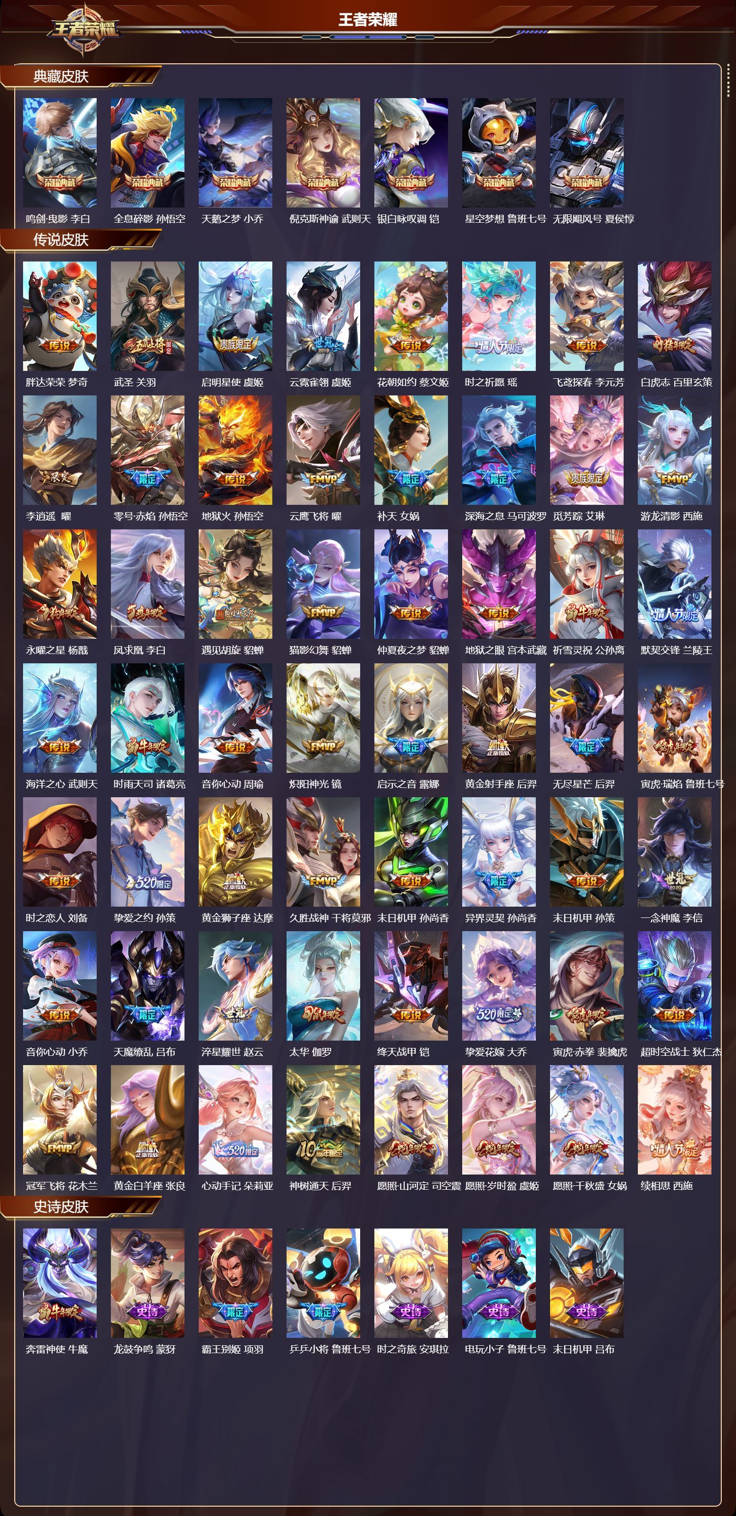 安卓QQ/荣耀王者/490皮肤/128英雄/7典藏/0珍品无双/0无双/0珍品传说/56传说/175