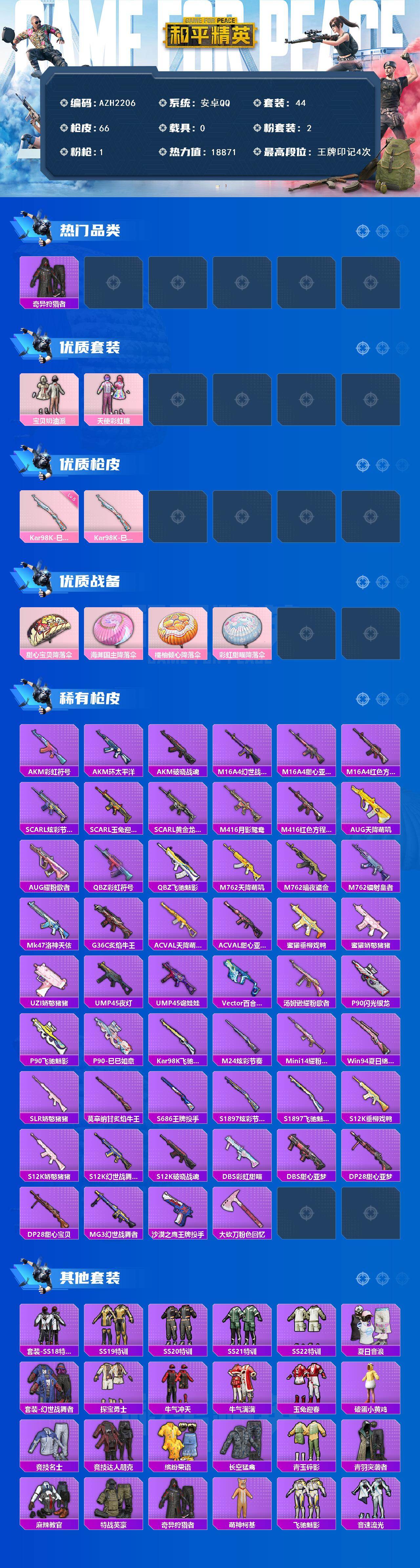 【AZH2206】安卓 手Q【宝贝奶油派 天使彩虹糖 萌神柯基 兔兔白日梦】2粉装-1特效枪-0载具-0粉色飞行器-18871热力值-4王牌印记-44套装-66枪皮