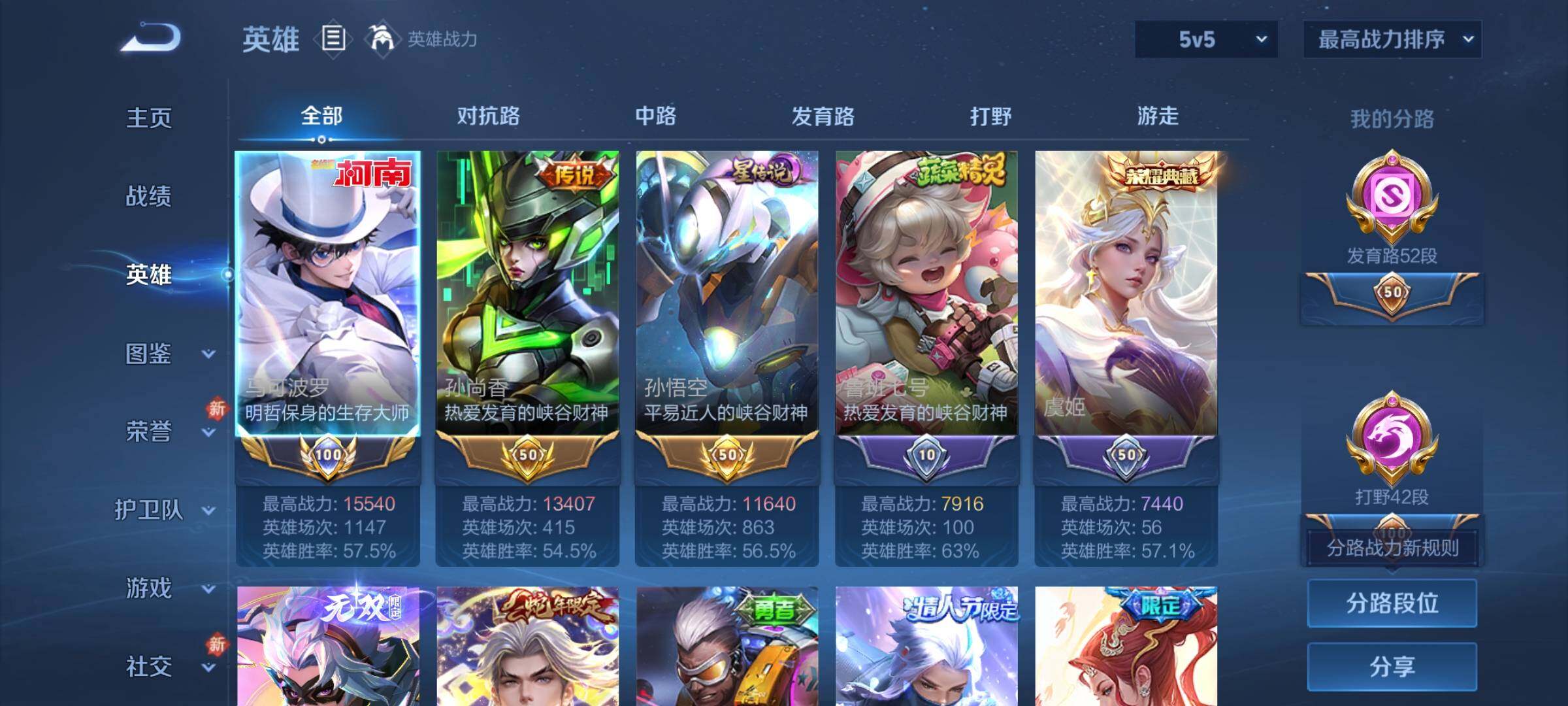 可换绑【射手战力号 马可波罗小国标1.55万 发育路52段 打野42段 金标万