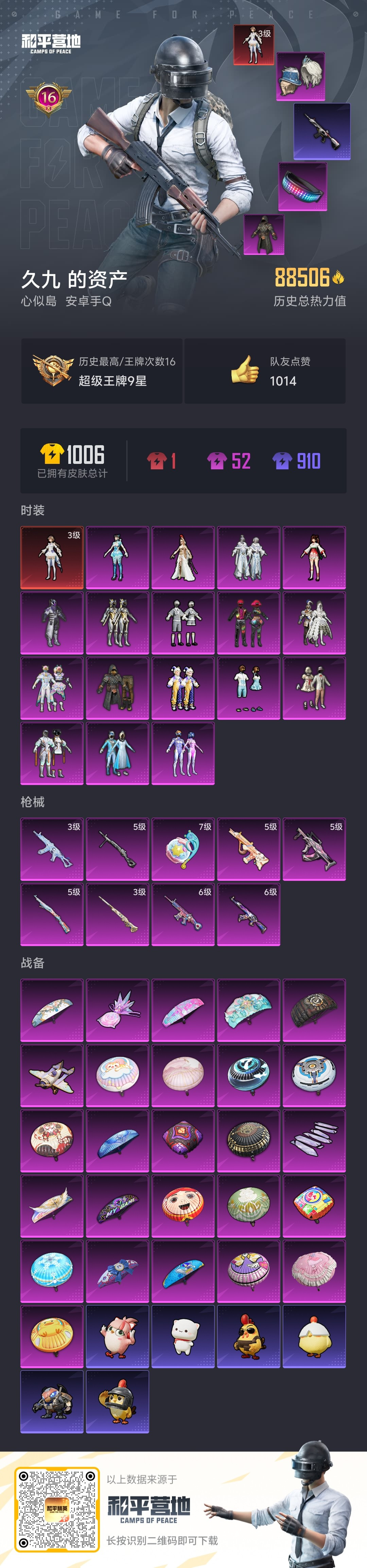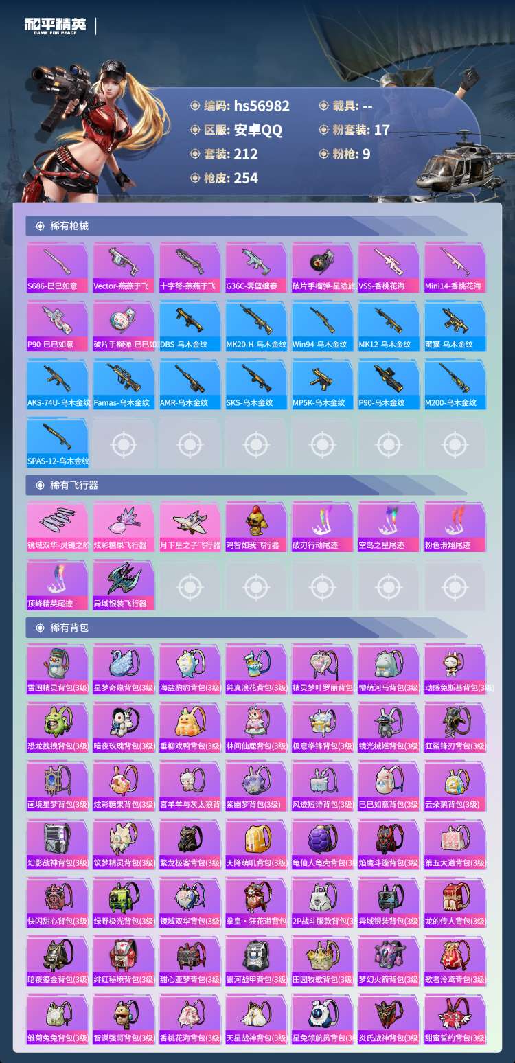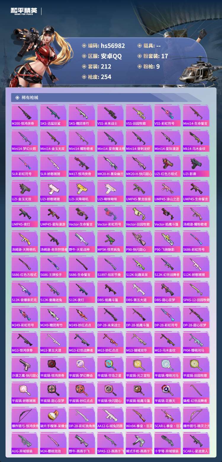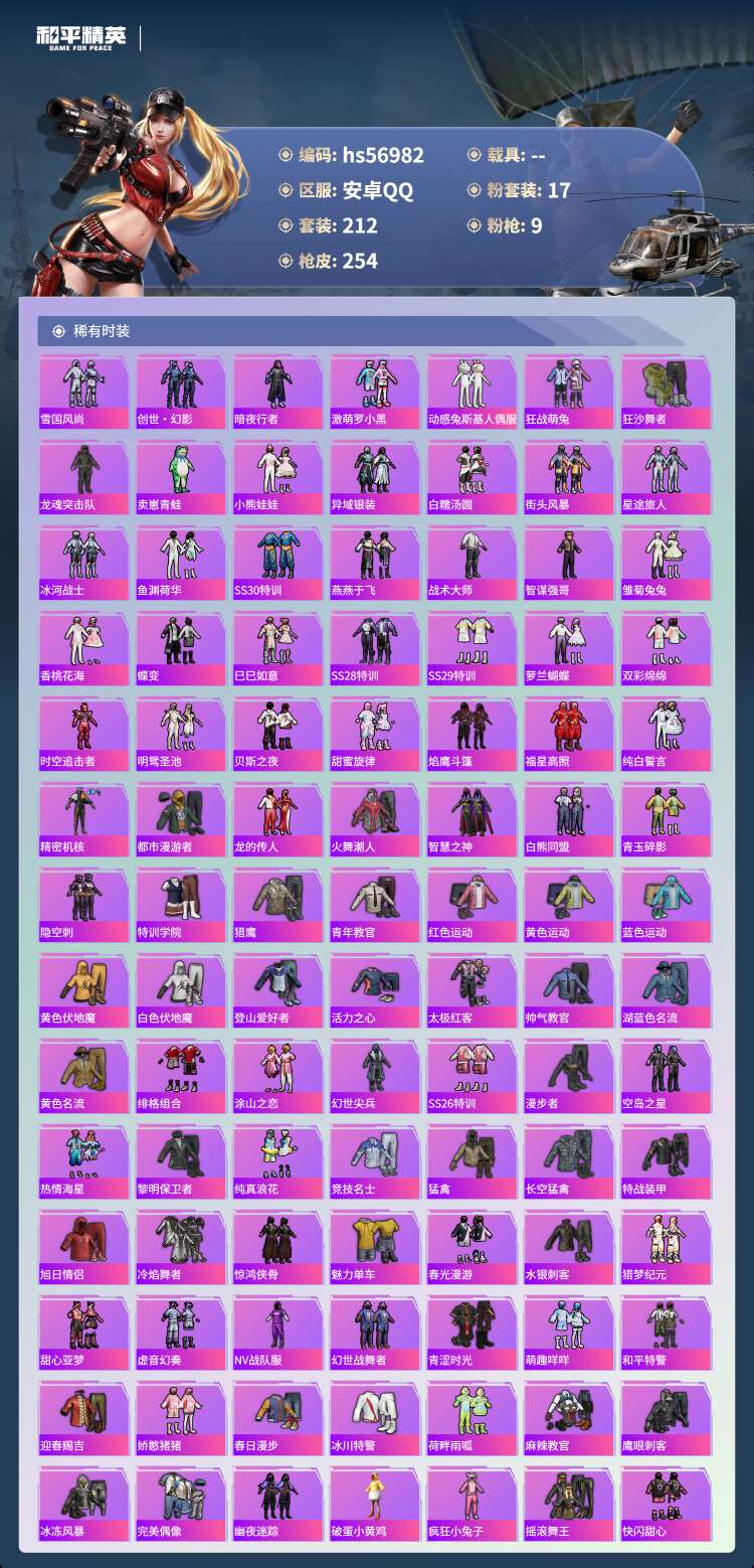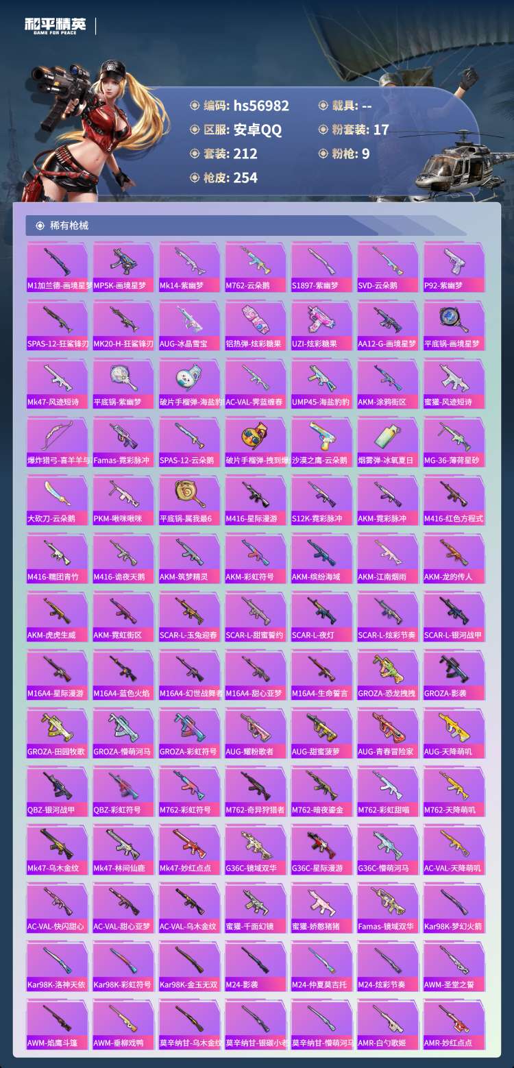 hs56982 安卓手Q-16王牌印记-1红装-17粉装-9特效枪-88554热力值-212套装-2