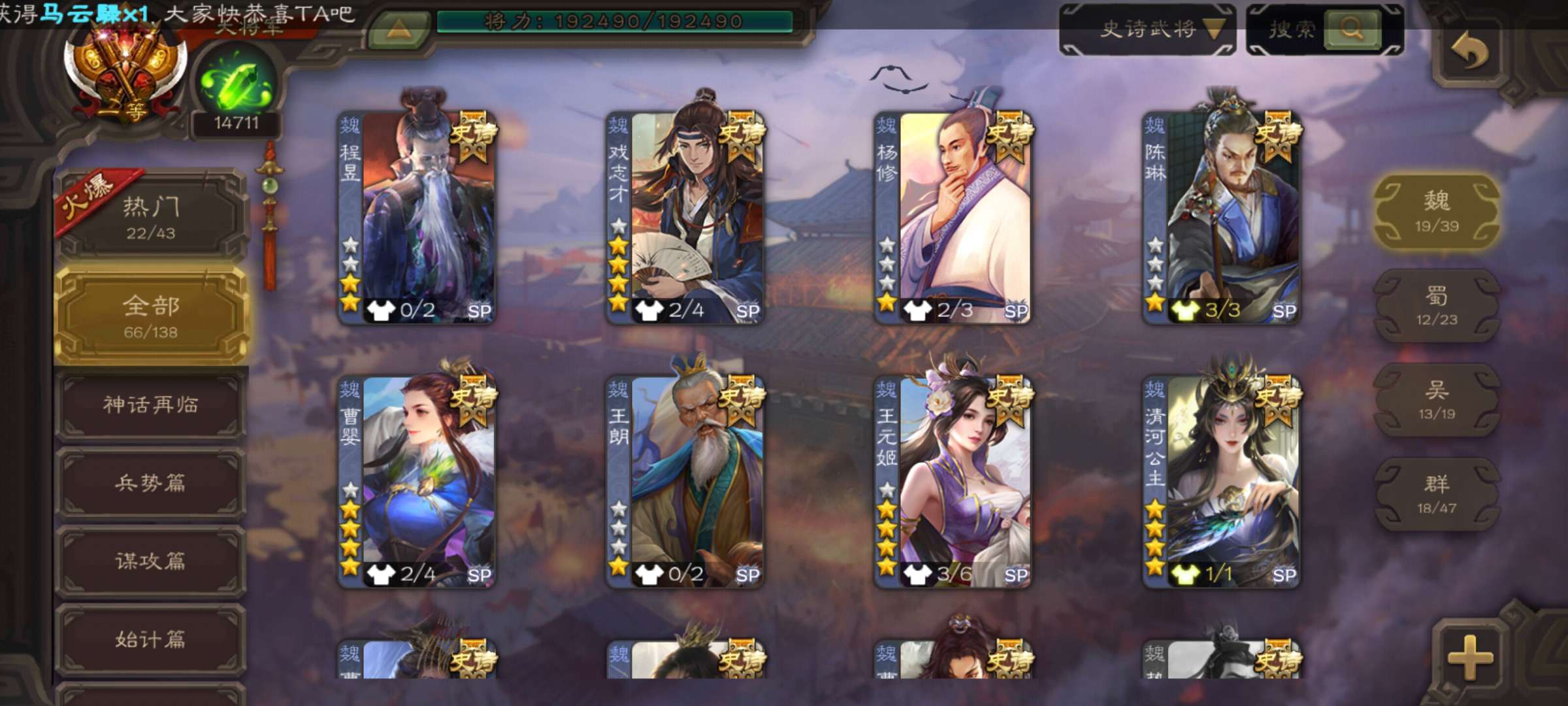 军八斗地主爽号,多史诗天宫武将,动态皮肤炫酷