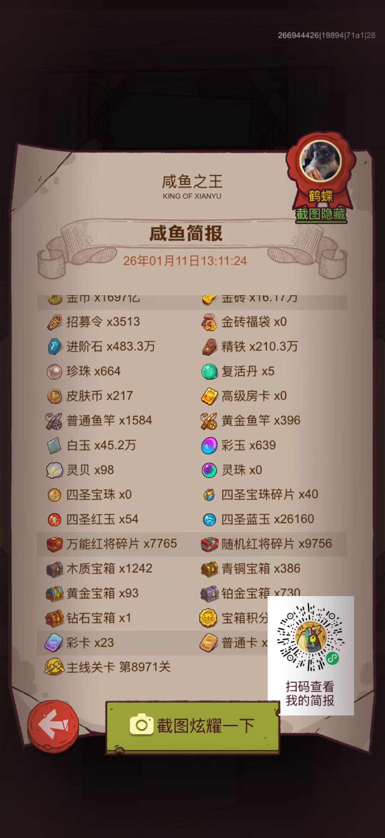 19867区119亿吴国四满级金鱼成品号低调出售,存的资源很多,春节可拿鱼,十殿可打1345678。