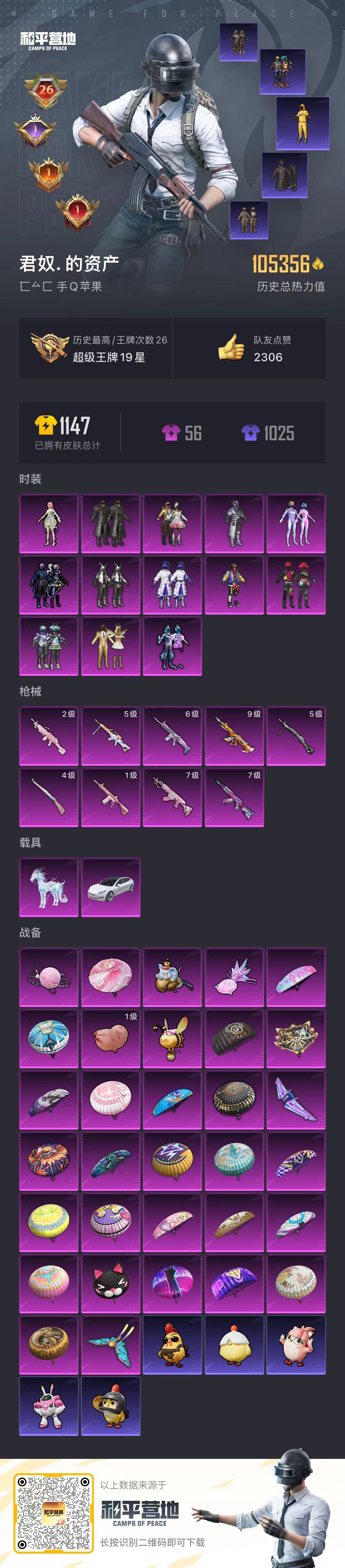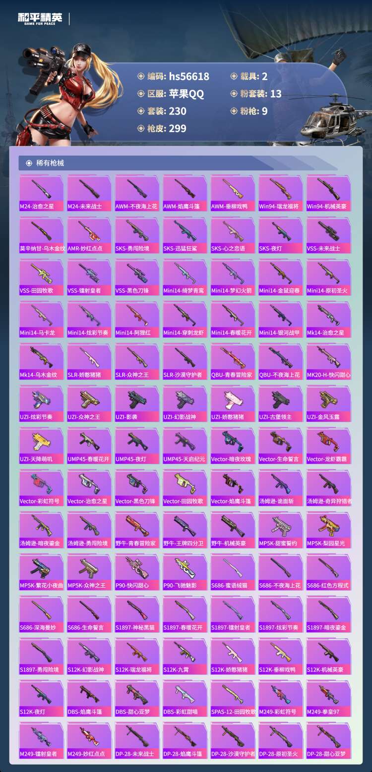 hs56618苹果手Q-26王牌印记-13粉装-9特效枪-2载具-106097热力值-230套装-2