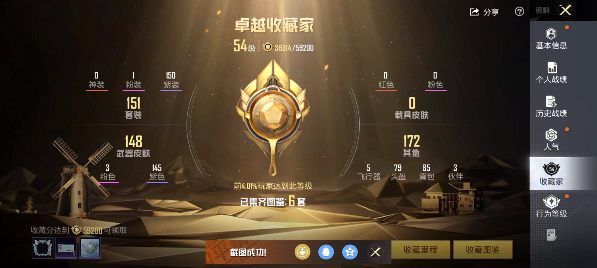 151套装/枪械3/装备200/战备115/王牌印记4/热力值53724/七级