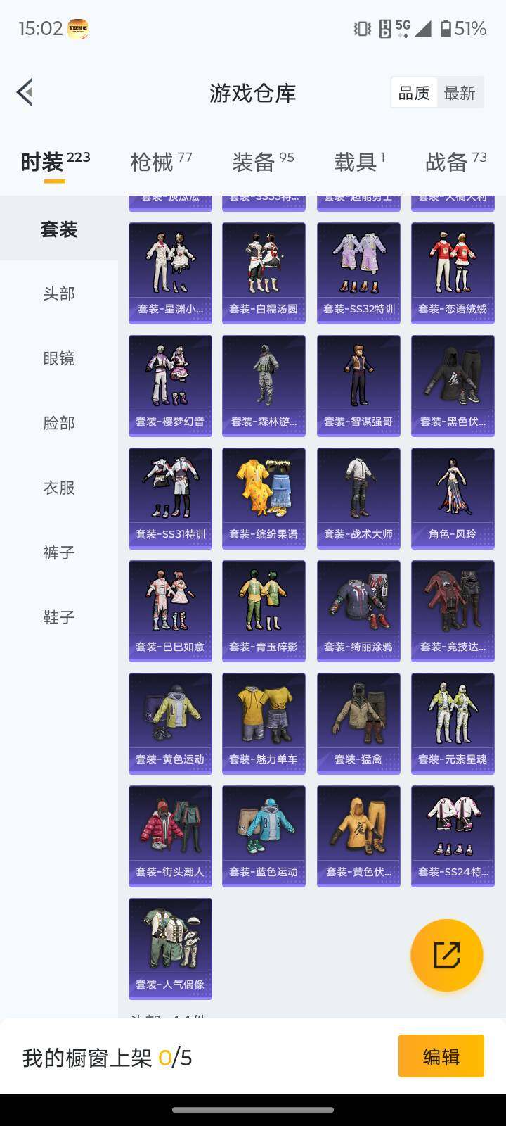 安卓 手Q-1粉装-3特效枪-1载具-1粉色飞行器-21496热力值-6王牌印记-53套装-77枪皮