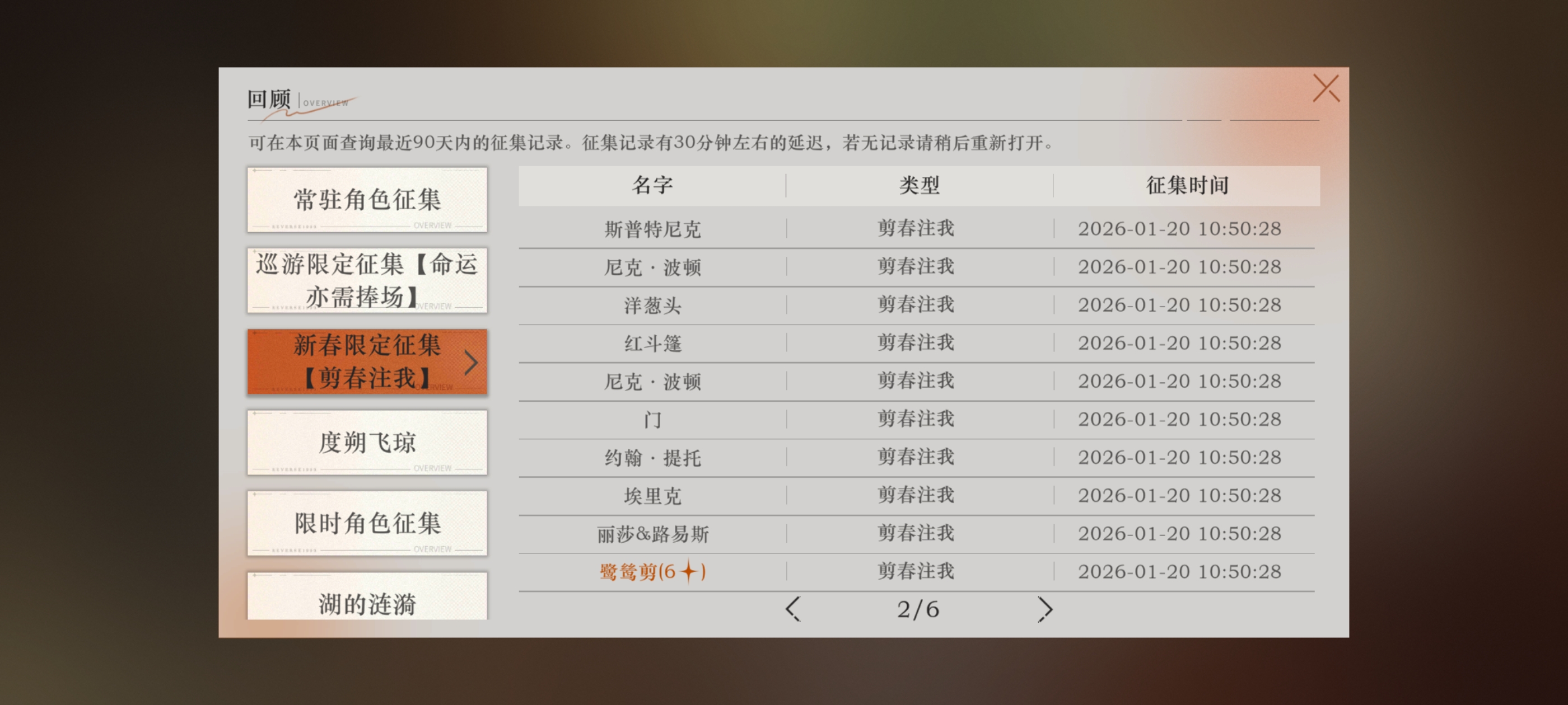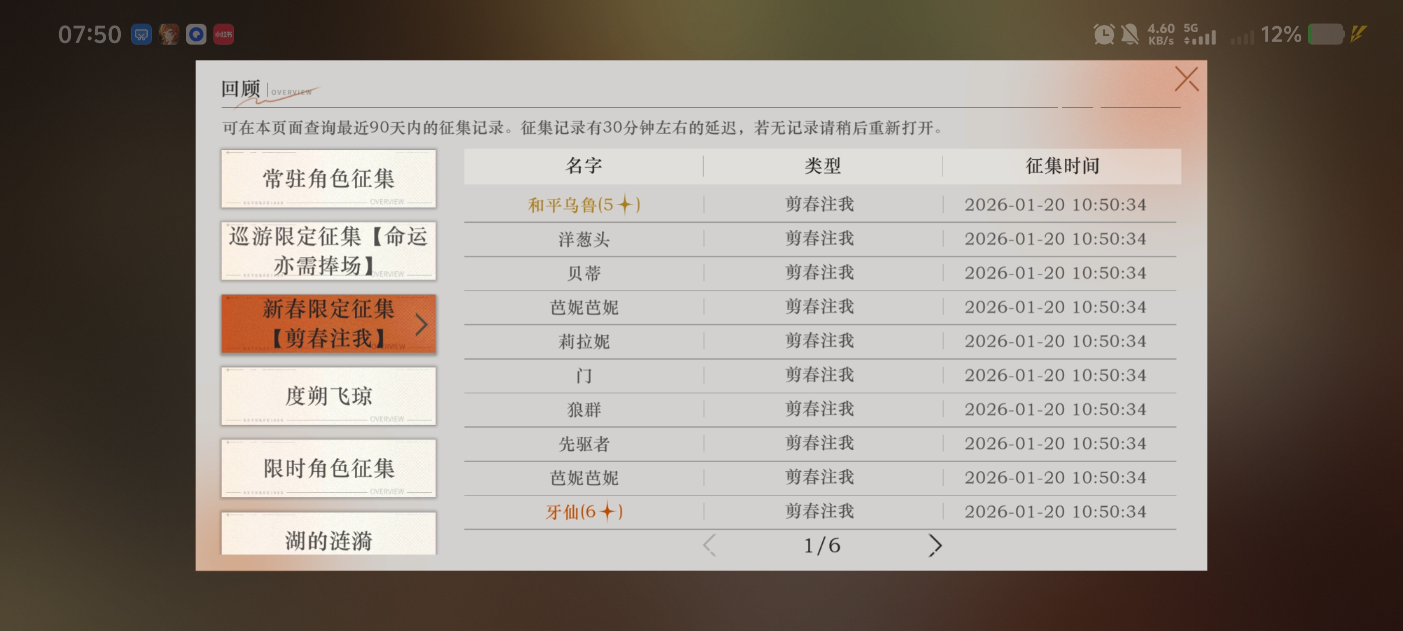 六星角色数: