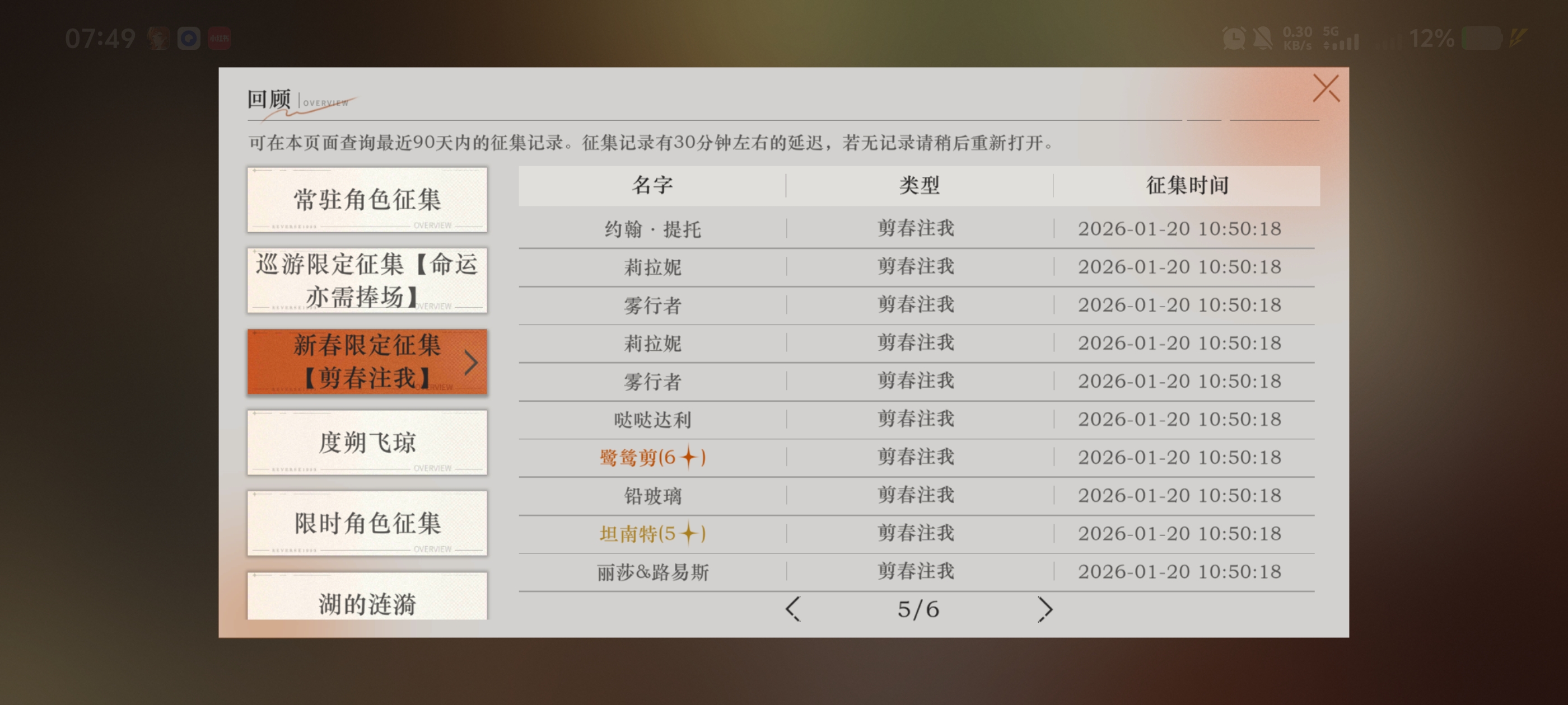 五星角色数: