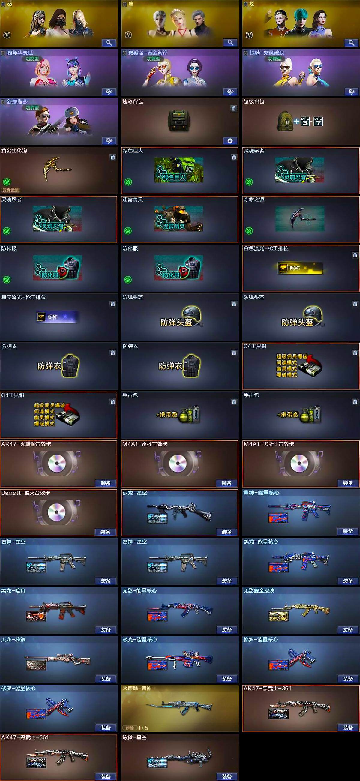 【音效卡】:AK47-火麒麟音效卡,M4A1-雷神音效卡,M4A1-黑骑士音效卡,Barrett-毁灭音效卡