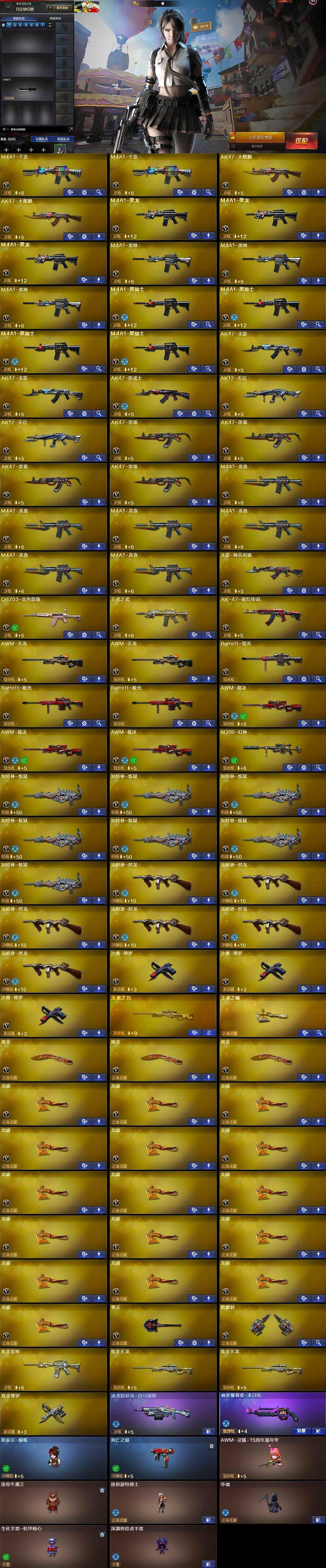 【热门武器】:QBZ03-金色蔷薇,M200-幻神,死亡之眼,M4A1-黑骑士*4,汤姆逊-烈龙*6,加特林-炼狱*7,斯泰尔-蝴蝶,沙鹰-修罗*3