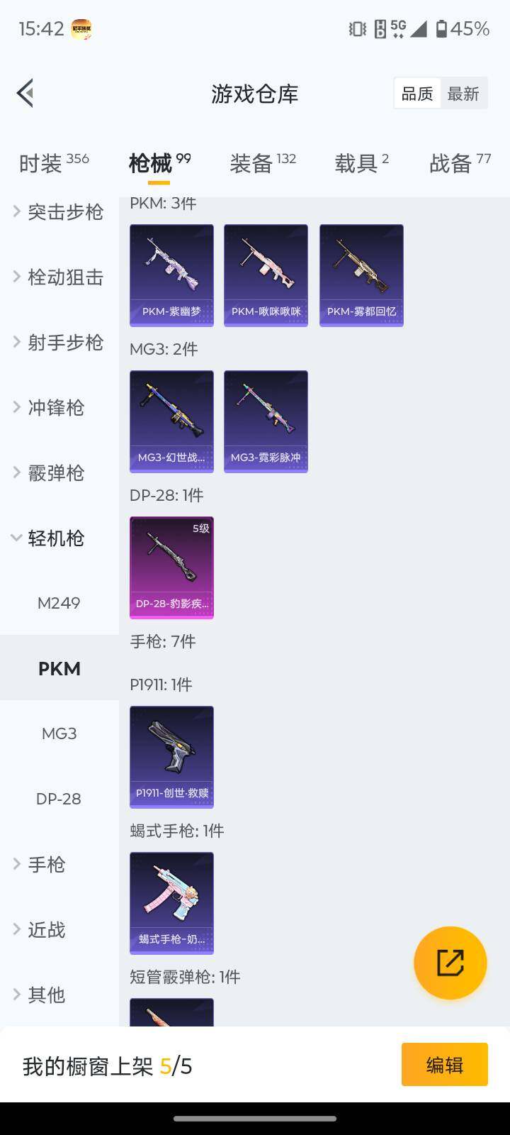 【粉色枪皮等级】:Kar98K-巳巳如意(五级),Mk14-甜梦熊击(五级),DP-28-豹影疾电(五级)
