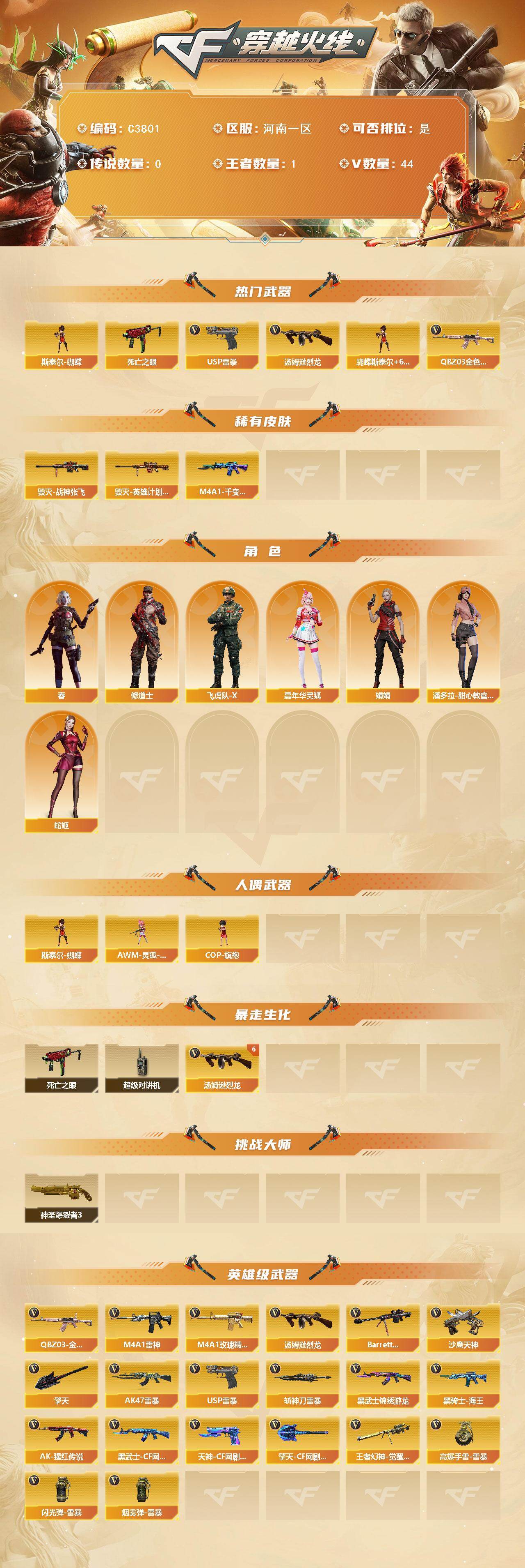 【C3801】河南一区-44V-1王者-0炫金