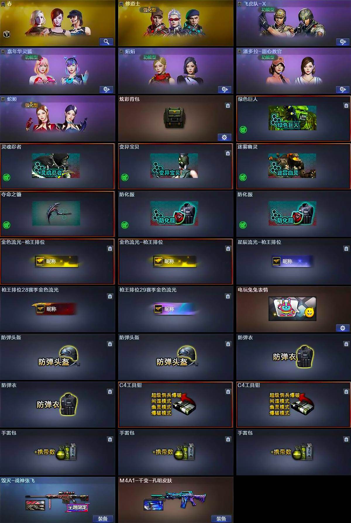 【皮肤】:毁灭-战神张飞,毁灭-英雄计划 皮肤,M4A1-千变-孔明皮肤