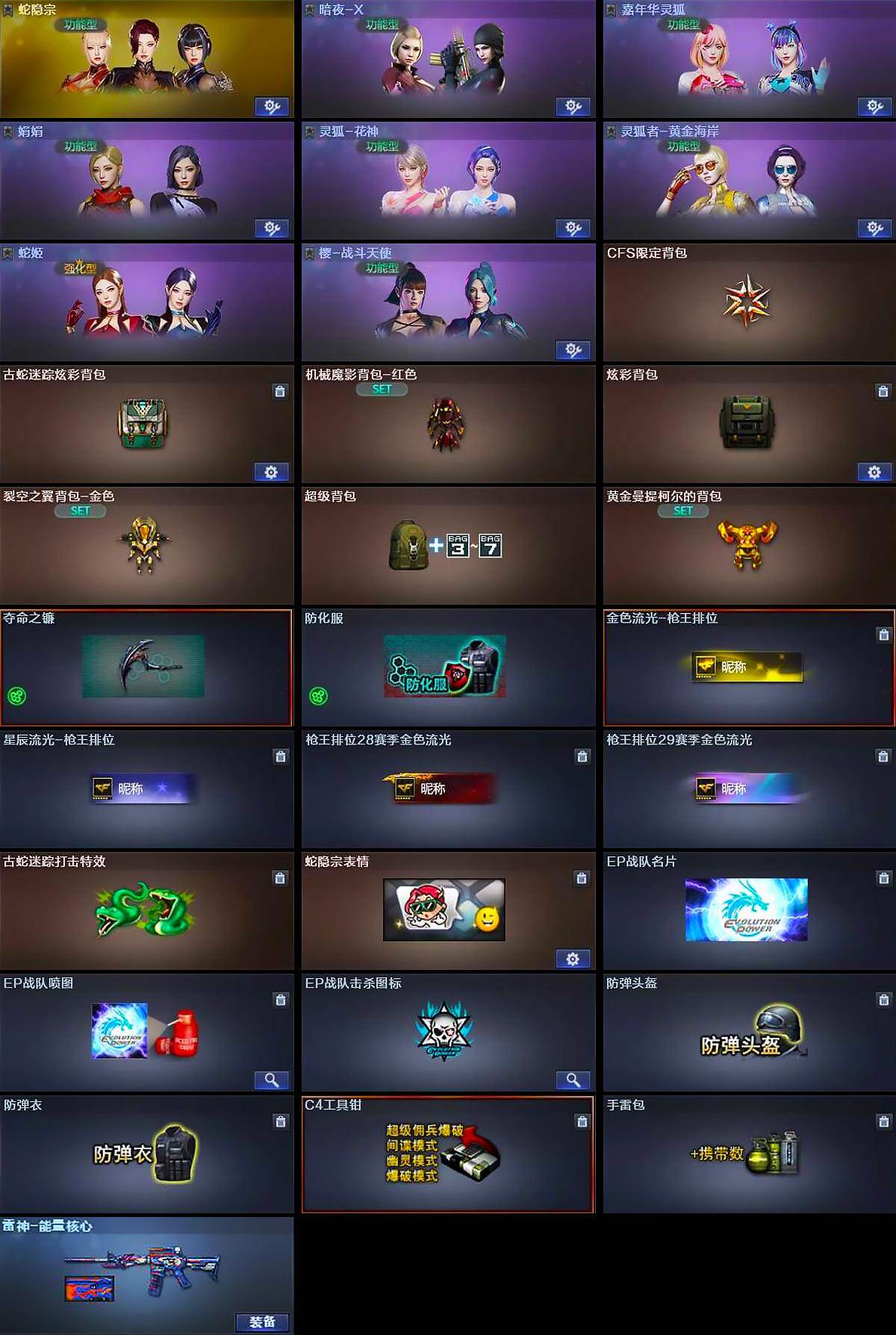 【角色】:蛇隐宗,暗夜-X,嘉年华灵狐,娟娟,0号玩家,灵狐-花神,灵狐者-黄金海岸,蛇姬,樱-战斗天使