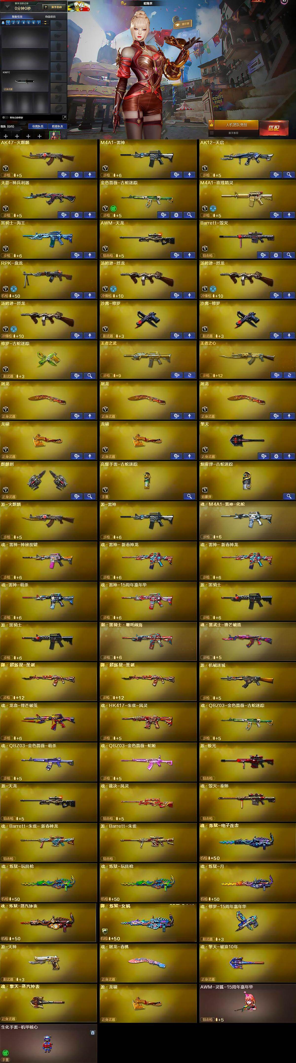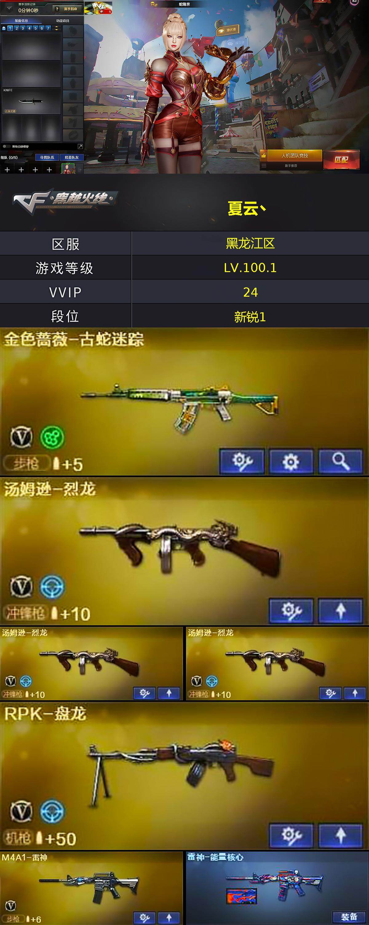 【热门武器】:金色蔷薇-古蛇迷踪,修罗-古蛇迷踪,汤姆逊-烈龙*3,RPK-盘龙,沙鹰-修罗*2