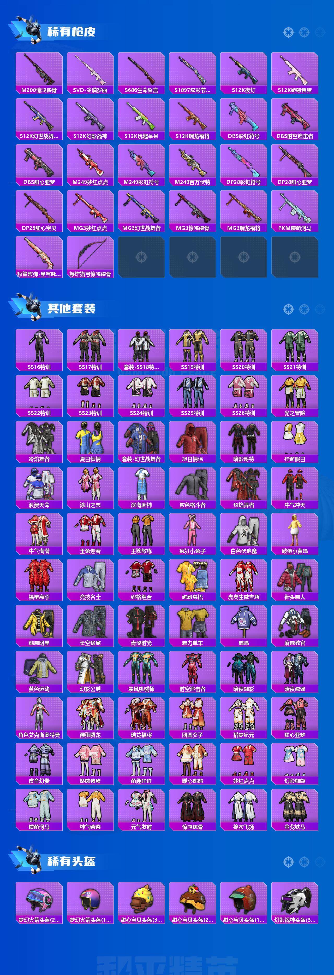 【粉色枪皮等级】:AKM-甜心宝贝(七级),M416-心之恋语(六级),SLR-暗夜玫瑰(三级),平底锅-仲夏莫吉托(四级